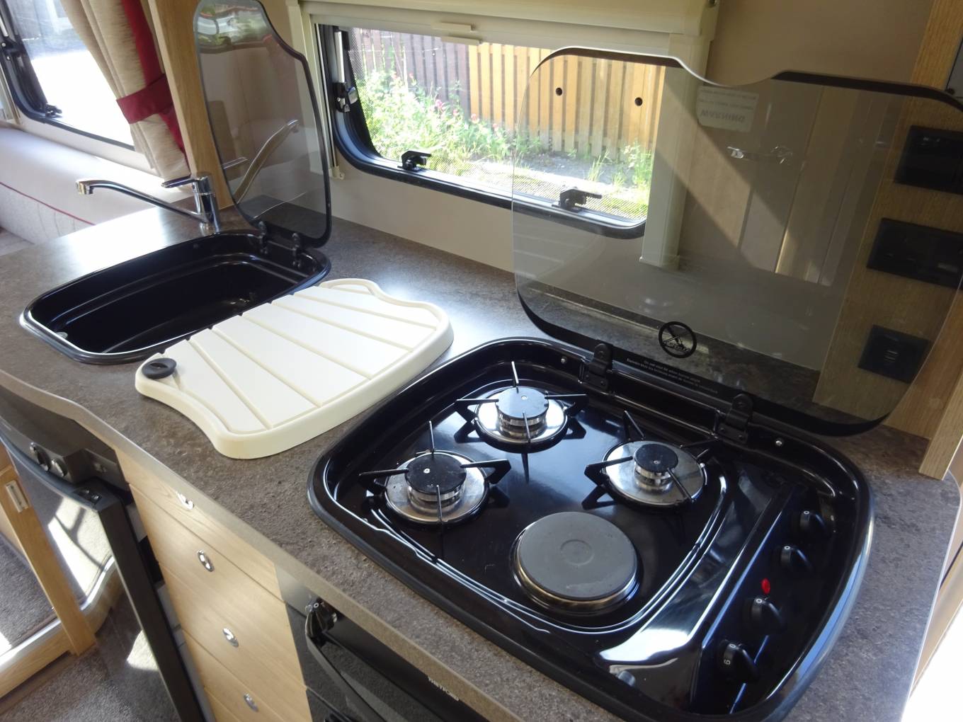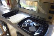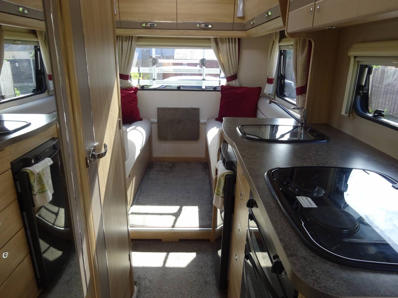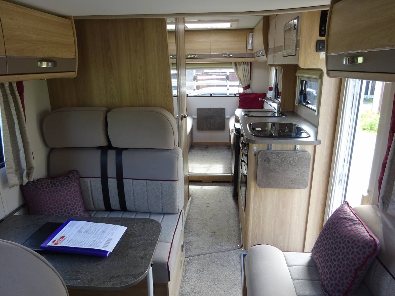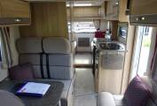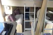 This is a six berth motorhome with six seat belts. The layout offers good space for families, starting at the back with the rear lounge that converts into a double bed, moving forward are the kitchen and washroom then to the left of the habitation door is the forward lounge / dining area. The electric drop down bed takes it's place above the dining area when required. The dining area itself converts to a double bed.