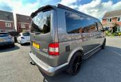 This striking 4 Berth with 4 seat belts comes in Metallic Grey with upgraded 20” Black Alloys and just 41,000 miles, 6 speed manual gearbox with the powerful 180Bhp engine and a digital head unit with Bluetooth, Apple & Android Carplay. The van has a Pop Top which provides the option for 2 to sleep in, with a rock and roll bed below making this into a 4 Berth Camper.