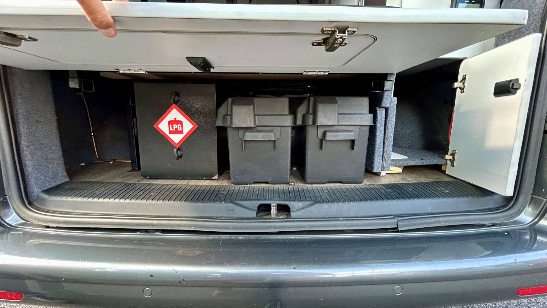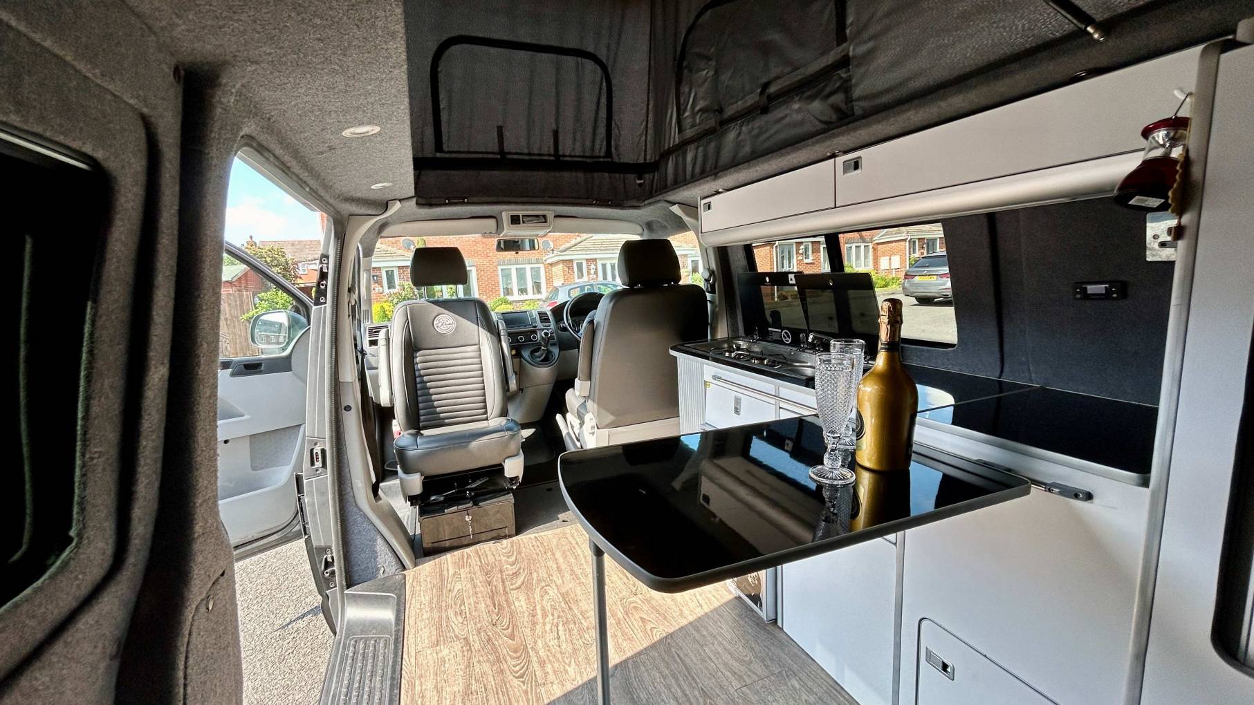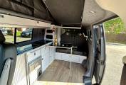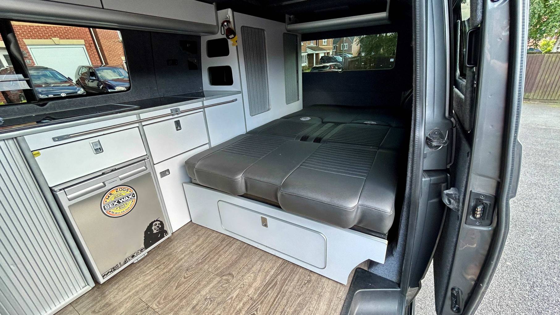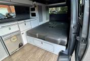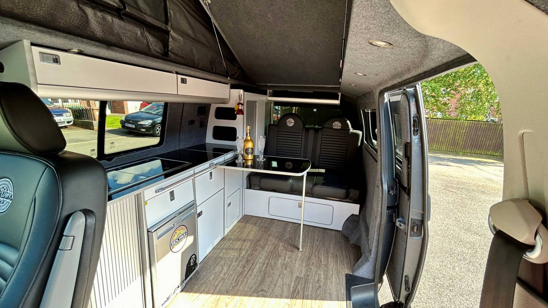 This total off grid camper includes a whopping 360W Solar Panel, Inverter, Victron chargers and controllers, twin leisure batteries, external BBQ point, 240V hook up point, LED lights, Alarm, USB points, remote controlled Diesel Heating, twin water containers, Tow Bar, Parking Sensors, Safe and all the extra benefits that you would find on a VW Highline.