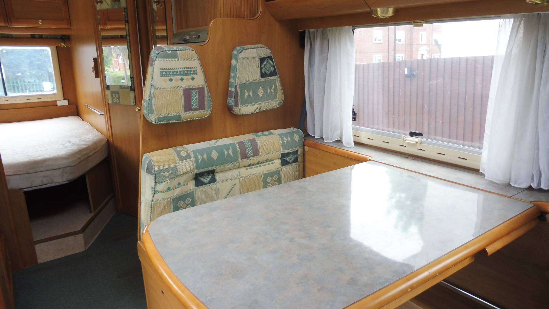 There is a kitchen area with SMEV combi-oven, 3-burner hob, sink plus large fridge with separate freezer compartment. The spacious washroom comes complete with separate shower, cassette toilet and vanity sink unit.