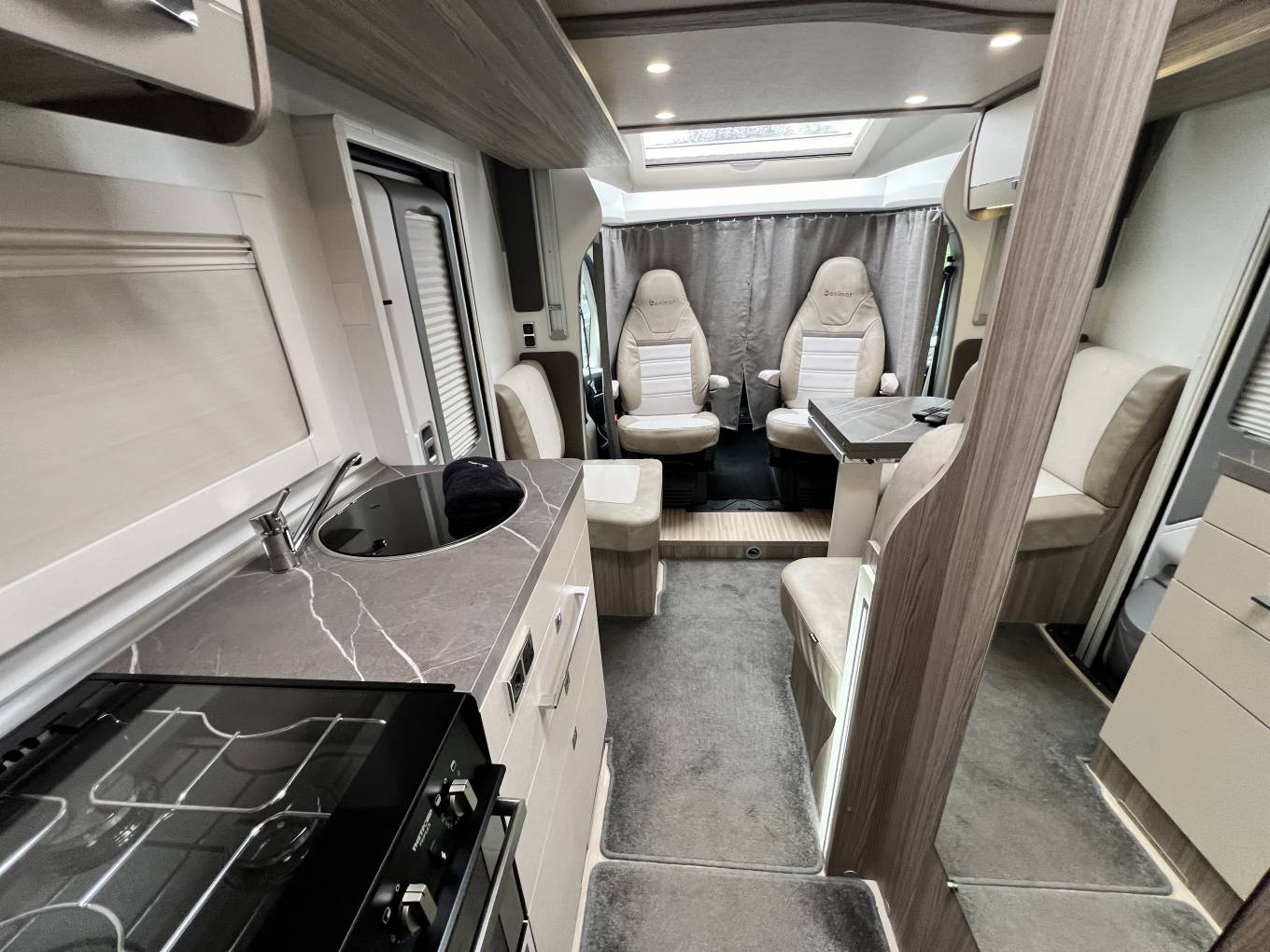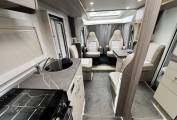 On entering via the flyscreen protected habitation door, to your left is the front lounge and dining area consisting of Twin Swivelling Captains Chairs, a single seat near the door with a double opposite, plus two forward facing belted seats.