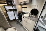 To the right of the entrance door is the kitchen where you will find a Two Gas Burner and One Electric Hotplate Hob, an extractor fan, an Oven Grill combination, a Microwave Oven, a Thetford Three Energy Source Fridge Freezer, a Sink with a Hot and Cold Mixer Tap and removable drainer plus plenty of cupboard and drawer space.