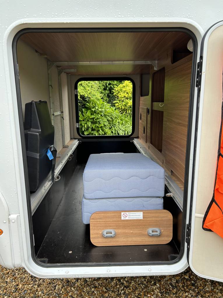 Measuring 6.93 metres in length this model comes with two large single beds at the rear that can make a huge double bed and a large garage space. This vehicle comes with Low Mileage, an MOT that is valid until May 2025, is a credit to its only owner and has a habitation check in July booked in to give you that extra piece of mind.