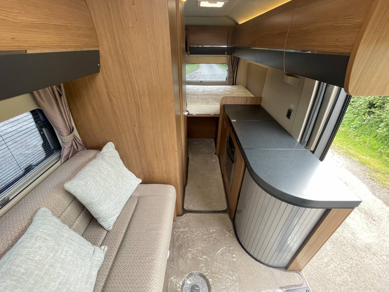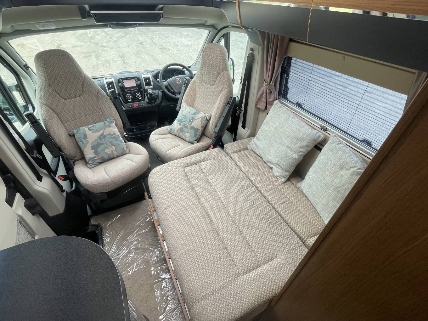 Motorhome Depot Retail Farnsfield Present this Auto Trail V-line 620 Sport, the most versatile vehicle in the V-Line family – providing a comfortable fixed rear bed with a settee at the front of the vehicle. The space-efficient transverse fixed rear bed leaves enough living space for an airy front lounge behind the cab seats with a practical kitchen and a fully functional wet room. With its distinctive bespoke aerodynamic roof incorporating the panoramic Skyline rooflight, flush-fitting tinted full-length windows and contemporary automotive design touches, the V-Line 620 is guaranteed to make you feel at home even when you’re on the road.