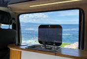 Experience the freedom of the open road with advanced off-grid electrics, including a powerful 200Ah Lithium Phosphate battery and solar panels, ensuring you stay powered wherever you roam. Featuring a Stide TUV-approved seating system, full blackout curtains for privacy, and a sophisticated water system, this van is not just a mode of transport—it’s a mobile haven.