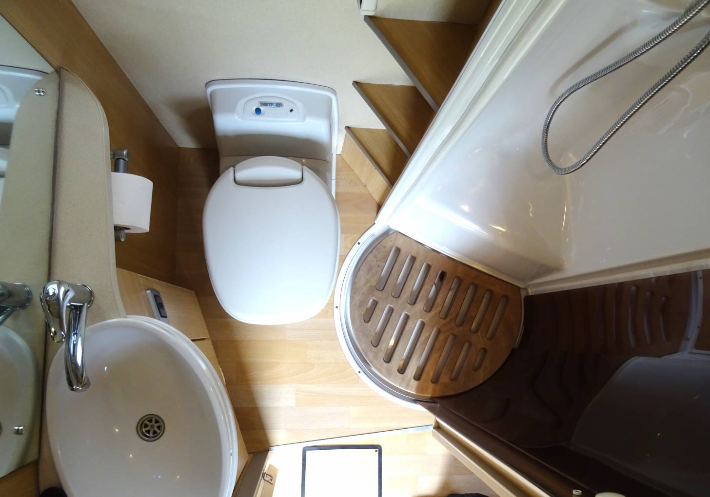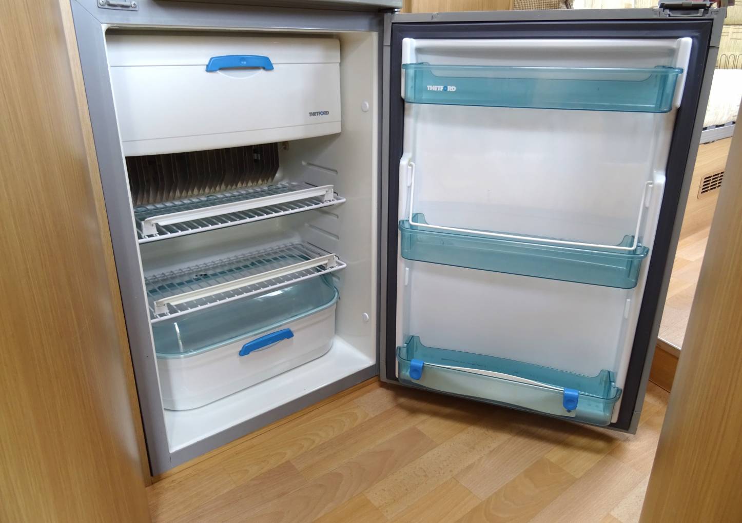 There is a high level of specification including onboard fresh and waste water tanks, dual fuel heating and hot water systems, dual fuel hob, gas oven and grill and a microwave. The heated washroom has a well designed enclosable shower and a vanity sink, toilet, good storage and easy to clean surfaces.