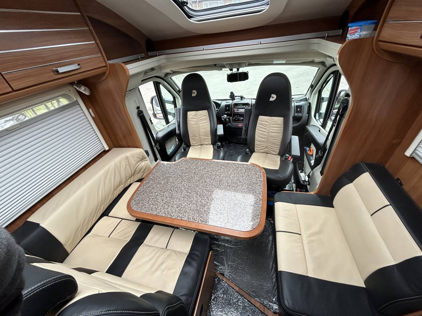 Motorhome Depot are proud to present this German built Dethleff Esprit T7150, LHD perfect for visiting abroad, on a Fiat 2.3 and 150 BHP you have all the power you need. This motorhome has everything you need to enjoy the adventure of a lifetime. The cab offers air conditioning, cruise control, built in blinds, LHD, reverse camera, surround sound stereo system, two tone leather seats that both turn to the centre to complete the dining area where you can enjoy a meal or simply relax after a day out exploring. The two forward facing seats have seat belts, the central seats also make a small single bed making it a 3 berth. The kitchen area has everything you need to cook up a feast with the 3 way fridge to keep your food fresh, a gas oven and grill, gas hob, sink and mixer tap. there is plenty of storage so you can take everything you need with you. The wash room has a cassette toilet, vanity unit, mirror, sink and mixer tap the shower cubicle is separate and spacious, the bedroom has two low single beds which can be made into a large double, again there is plenty of storage with a large wardrobe, and cupboards underneath the bed and a TV included. The heating and water is controlled with the Truma system, it has an on board Telair generator so no need to worry about keeping your batteries topped up. there is a trio gas alarm fitted for your safety. Externally there is a wind out canopy, ladder for access to the roof which has a roof rack, a bike rack, external shower and BBQ point, the Gaslow system with two bottles makes it easy to fill. With recently changed brakes and a full service history you can be sure for a safe trip. This motorhome can be viewed in Doncaster by appointment only.