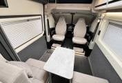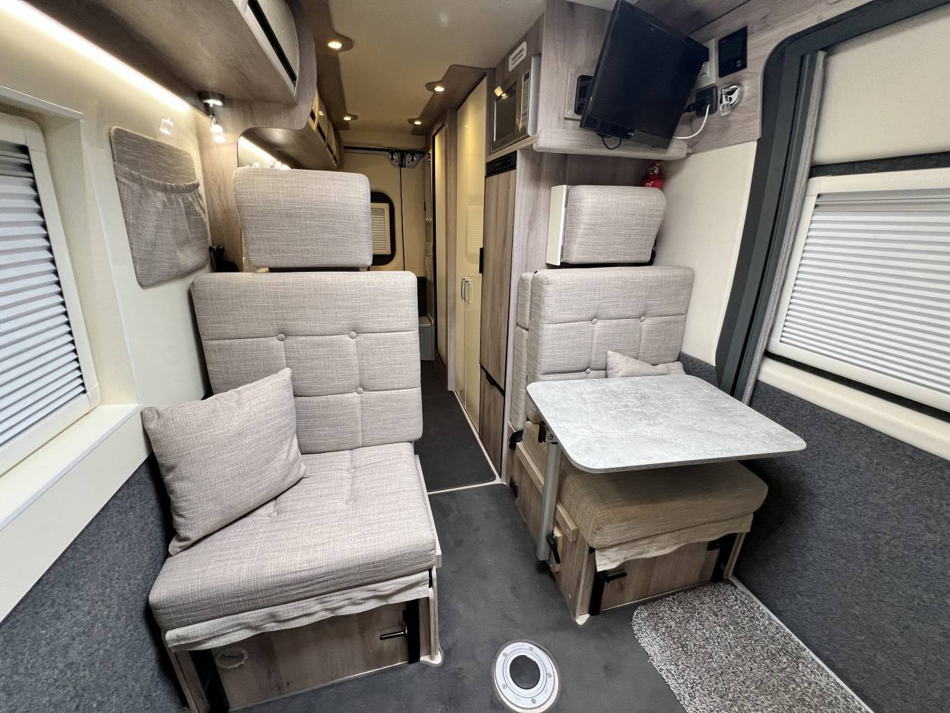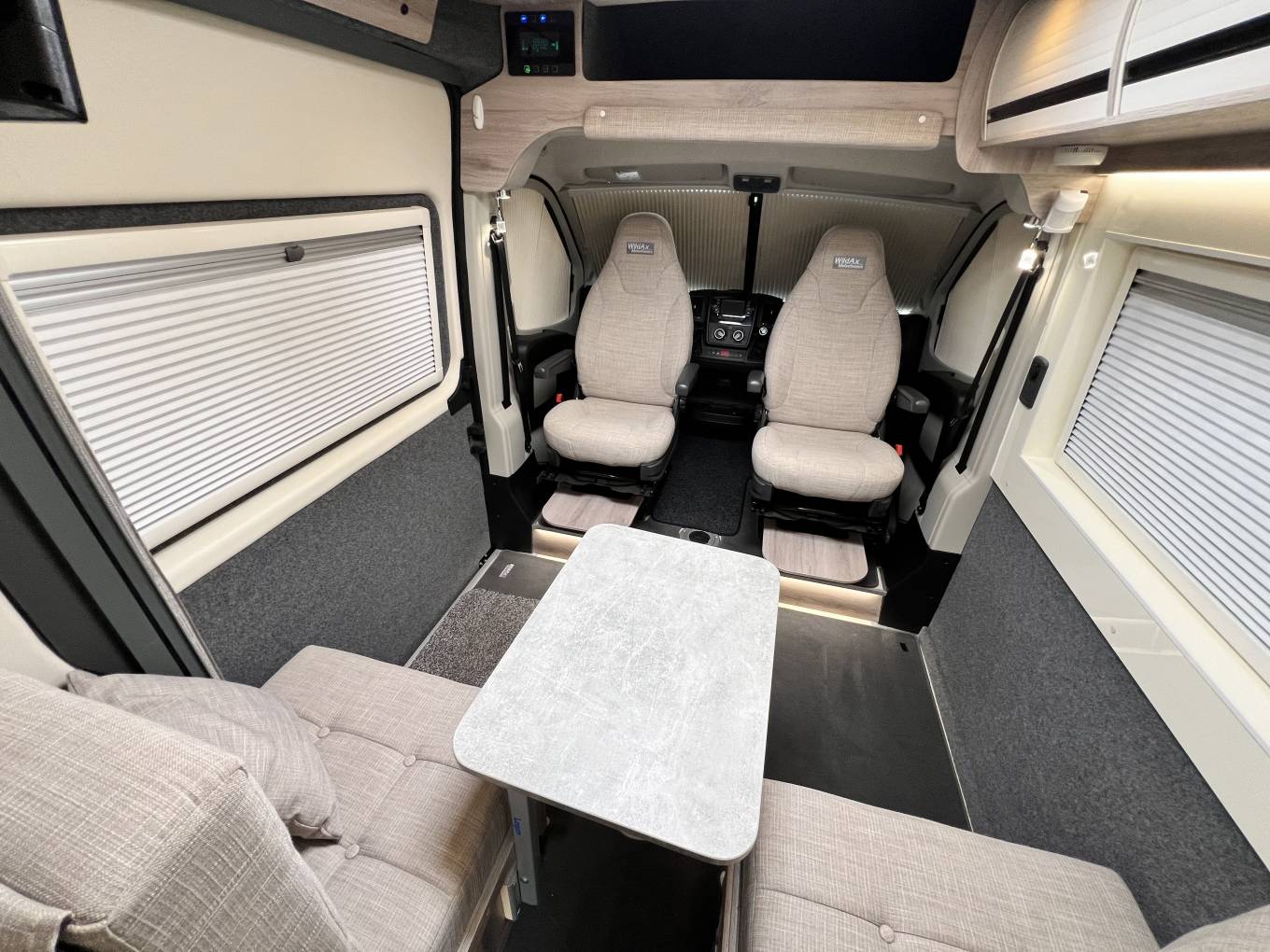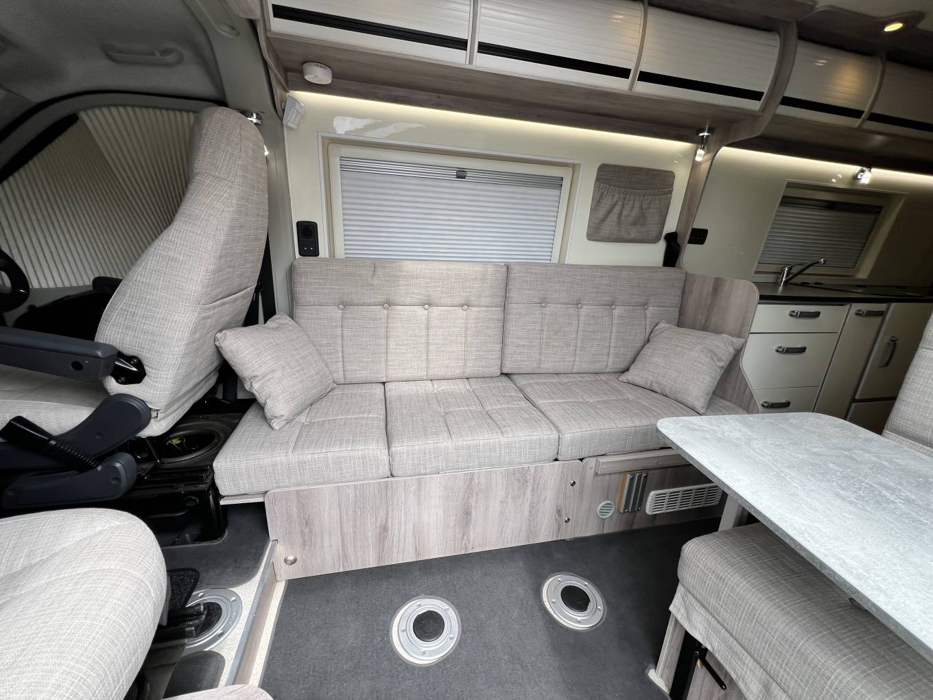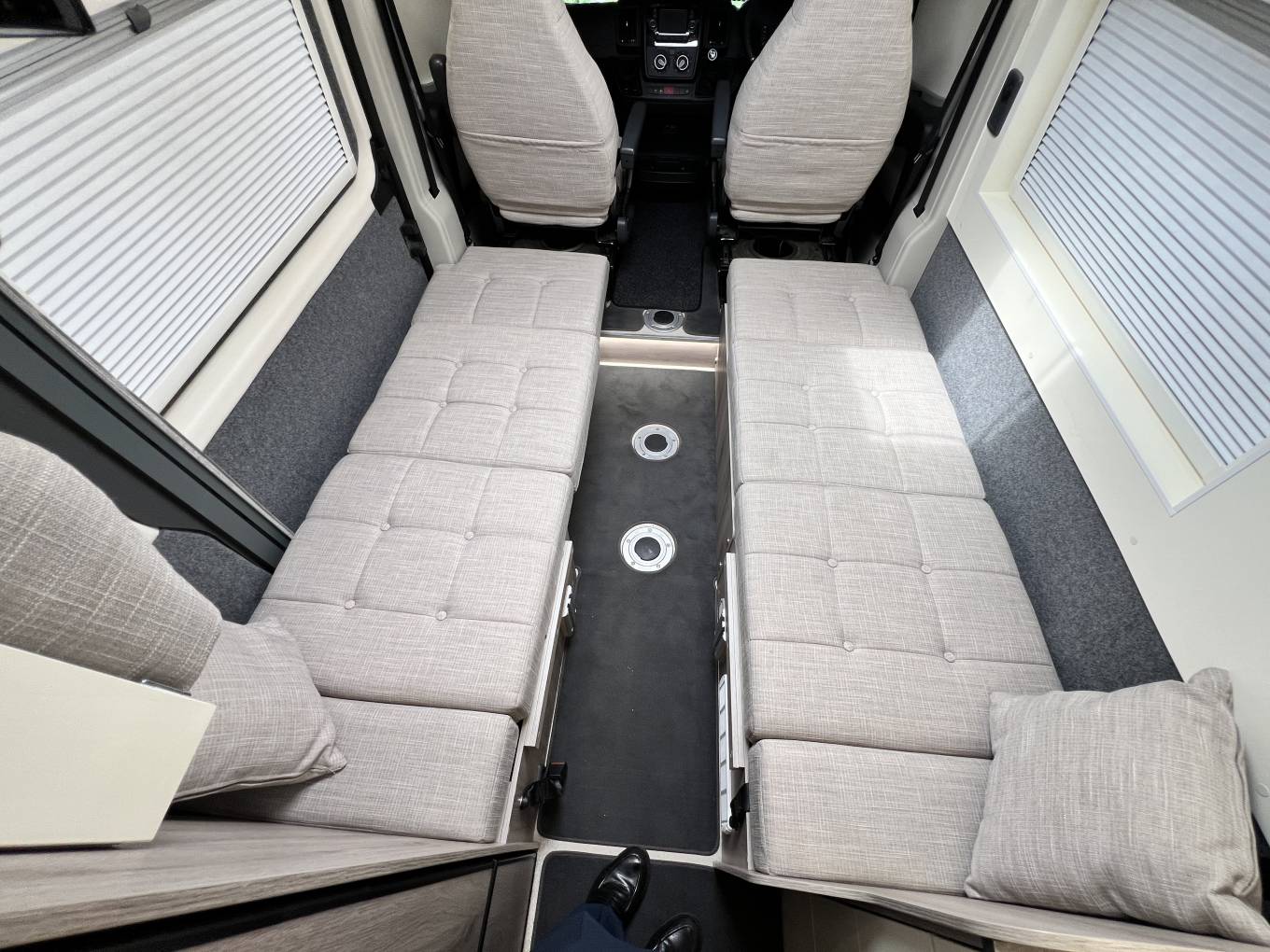 Here there are two forward facing belted seats opposite the twin swivelling Cab Chairs.