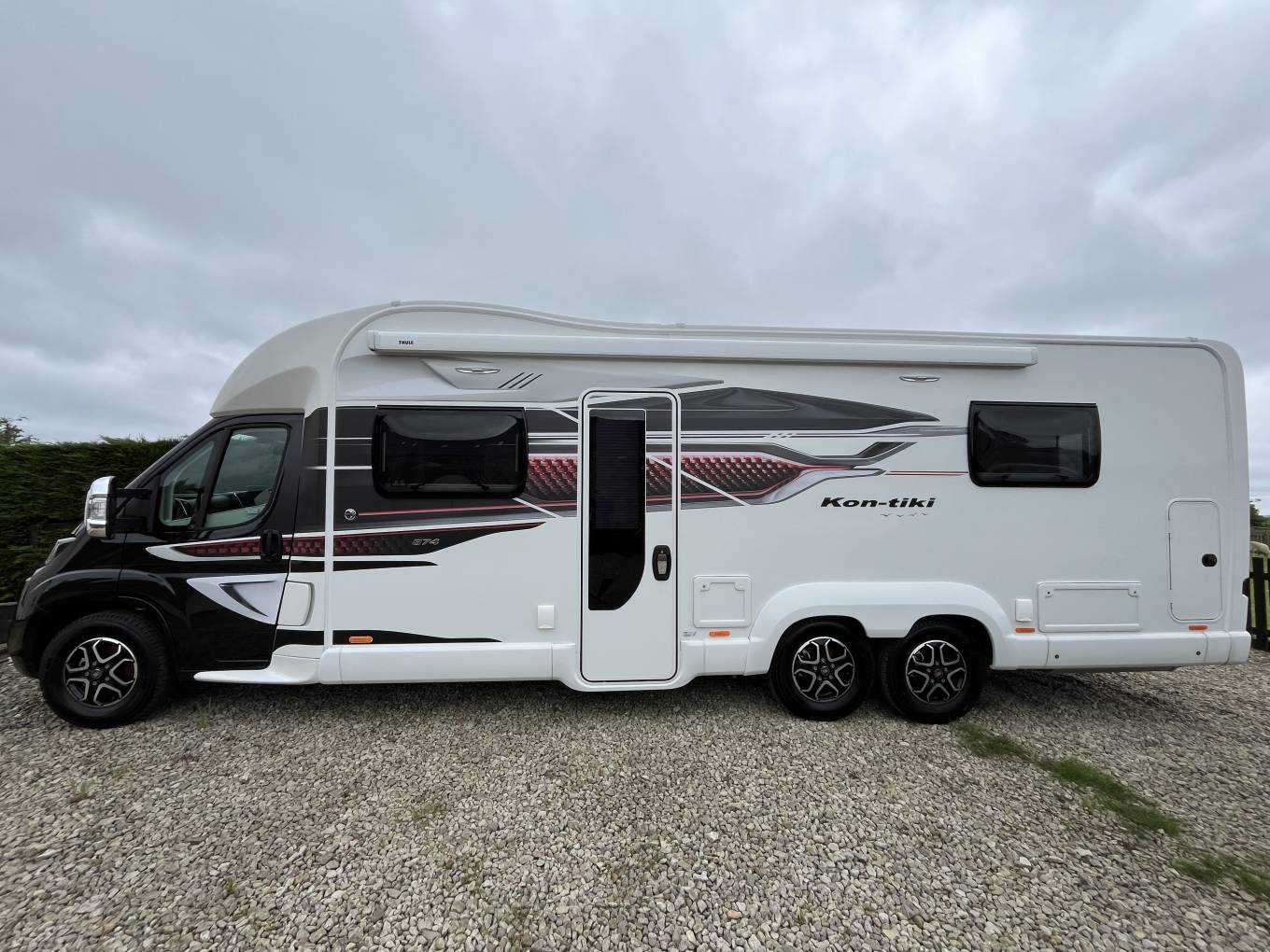 Motorhome Depot Bolton are pleased to offer for sale this 2023 swift kon-tiki 874 with only 25000 miles on the clock. There has been no expense spared on the vehicle. It comes with the following extras. Hydronic self leveling system, the Truma fitted habitation air aircon and heater, heated camp chairs rvex television. Wi-Fi (needs own SIM card), Bluetooth radio, tracker (needs own sim card/ subscription), dash cam and reverse camera and fear viewing camera and apple car play. Included there is a cardiac out side bbq (used once)a European travel pack and tool kit. There are 2 gas bottles, one full, one 3/4 full. The motorhome has been ceramic coated and comes with a farther care bag that is still sealed. There are two cab seats and three other (isofix seats) that fold out from the benches. The shower has never been used and only the drop down bed slept in a couple of times. This one isn’t to be missed at this price with all these extras. Please get in touch for more information and pictures. Finance, warranty and part exchange available.