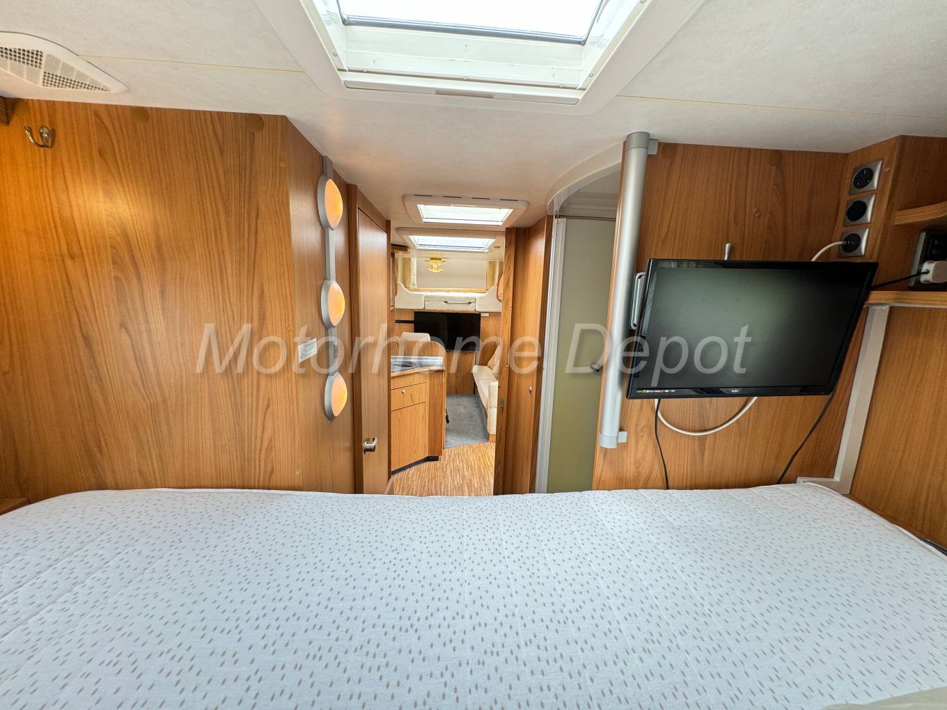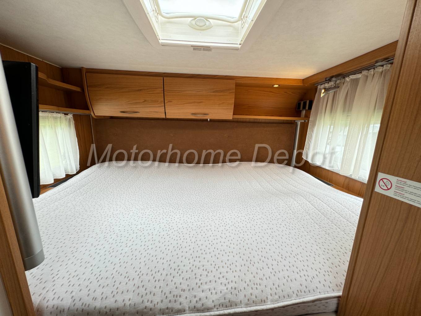 Finally at the back is the fixed rear double bed over garage this can be accessed usung some foldaway steps & is transverse. It also benefits from having a TV point with flatscreen TV at the foot of the bed.