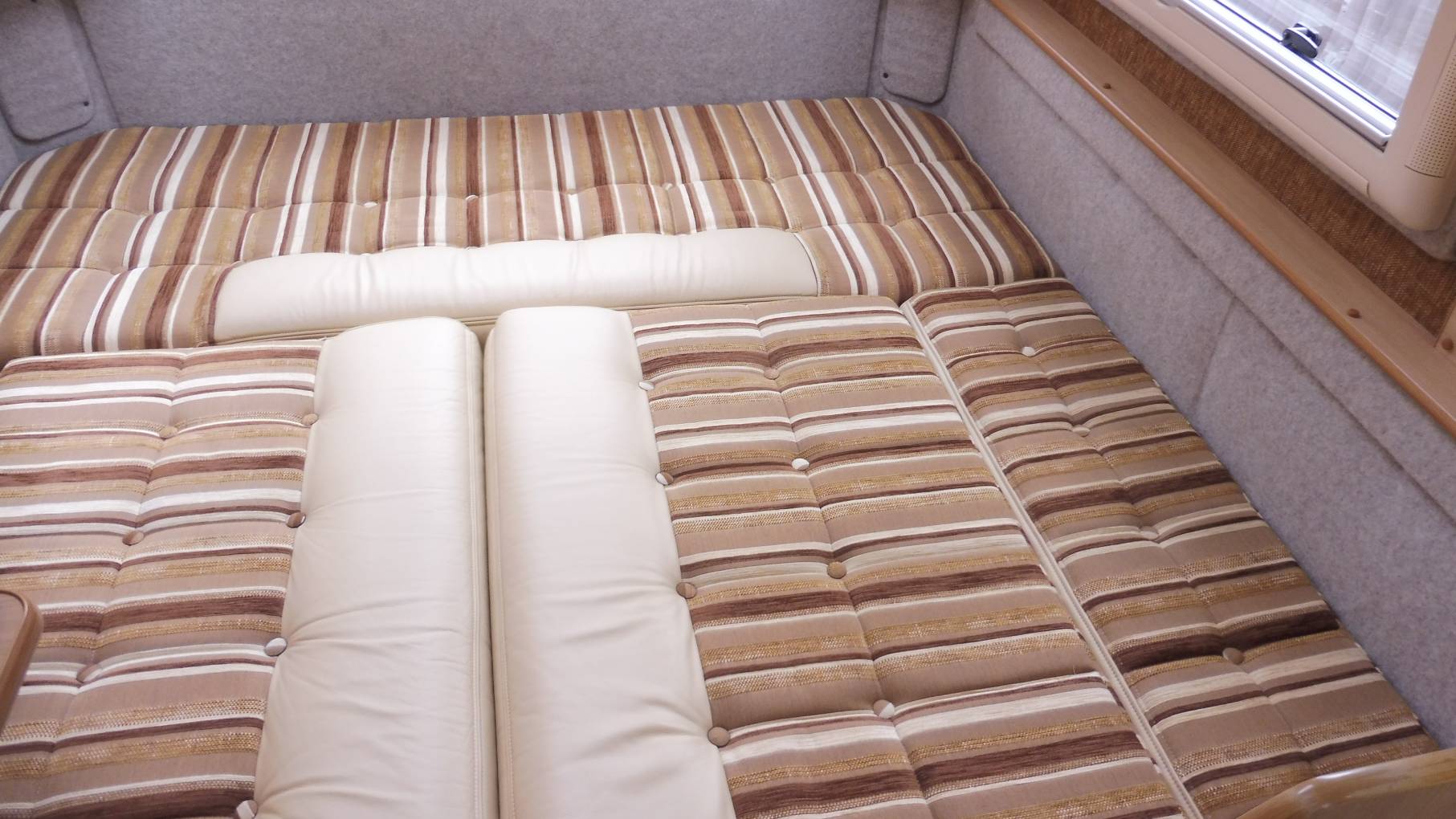 At the rear is a large lounge ideal for relaxing, entertaining or just watching the world go by with large windows all round and a skylight making for a bright and airy space. There is a Cytrac satellite TV which is untested as my client hasn’t used it. At night the sofa quickly converts to a large double bed with numerous lighting options to suit all the moods. The IH branded furniture oozes quality and the contrasting wood of the cabinets adds a rich feel.