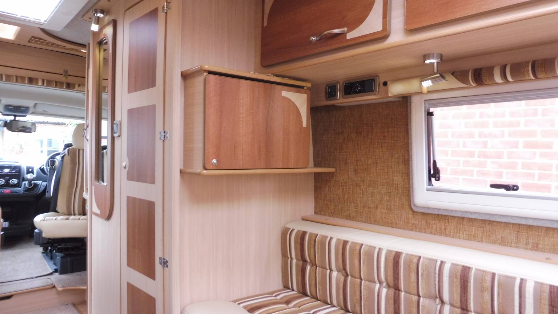 Up front you are equally well provided for and the Automatic 150bhp Fiat Ducato 2.3L with air-conditioning, multimedia entertainment system and steering wheel mounted controls, reversing camera and Remis cab blinds makes getting to your destination part of your holiday. With full service history this motorhome is a must if you are in the market for a luxury 2-berth touring experience.