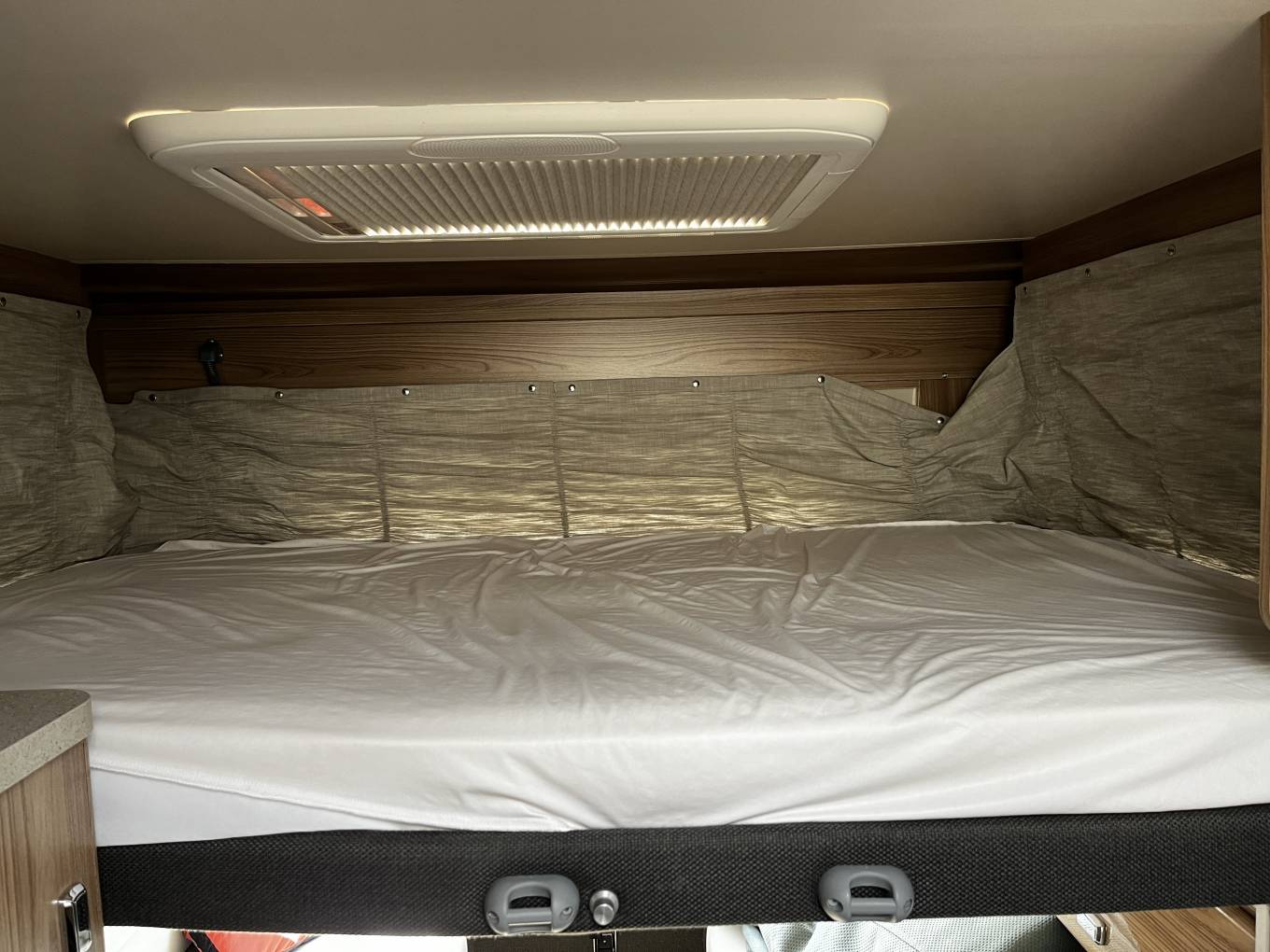 pull down bed provides a comfortable sleeping space with safety netting for
