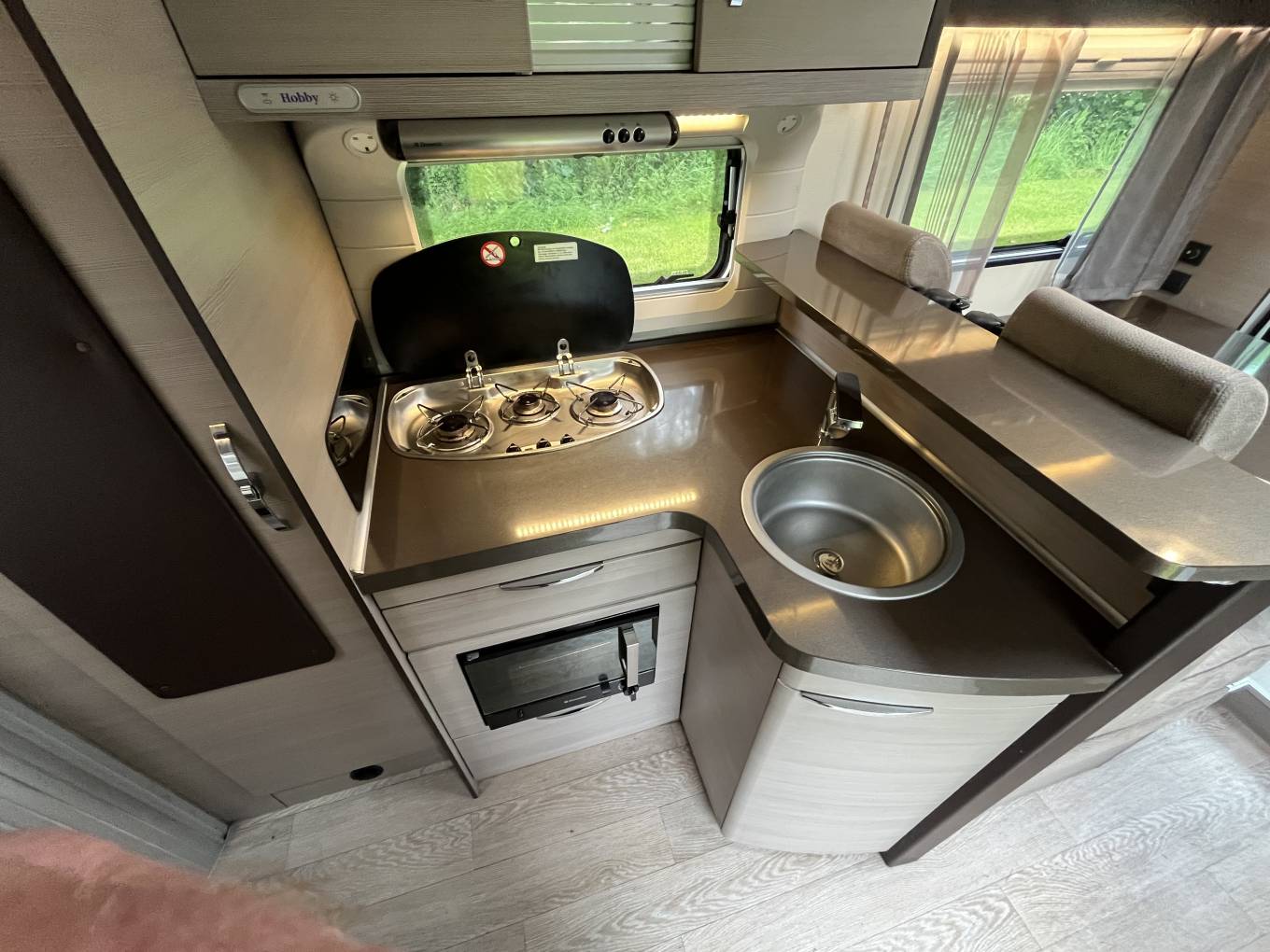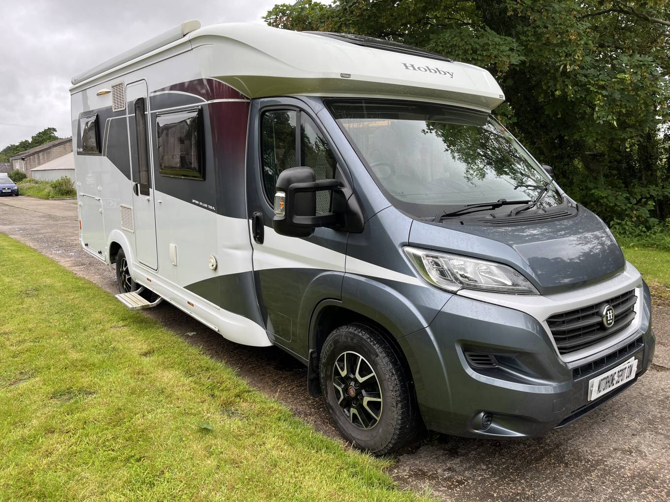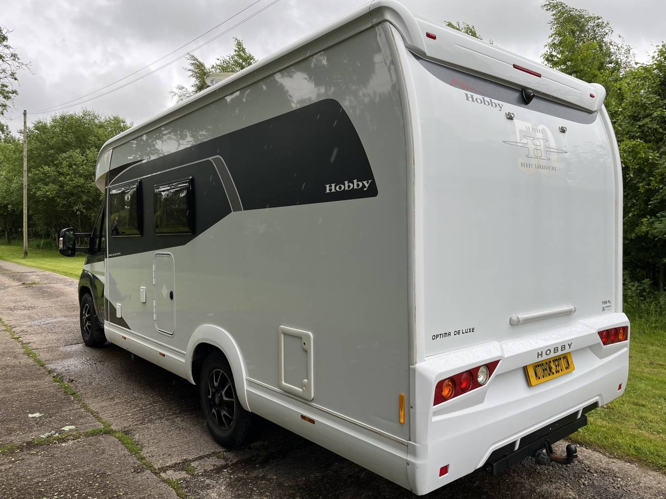 Hobby Optima T65 FL, 4 Berth with Fixed Rear Bed and Garage. This motorhome was registered March 2016 with 2 owners and 25,079 miles on the clock. It is in lovely condition inside and out and is built to the usual high standard you would expect from a Hobby with a beautifully finished interior. At the rear there is a fixed French bed, under which is the garage, next to this is the bathroom with separate shower compartment. In the centre there is a well equipped kitchen and at the front is the lounge area with extendable table, settees and captain seats. It comes with 4 Seat Belts, Cab Air Con, Cruise Control, Alarm, Rear Camera, Sat Nav, Alloy Wheels, TV, Aerial, Canopy Awning, Electric Step, Tow Bar and Solar Panel. An excellent example available for viewing by appointment in the Preston area. Call for more photos, videos and information.