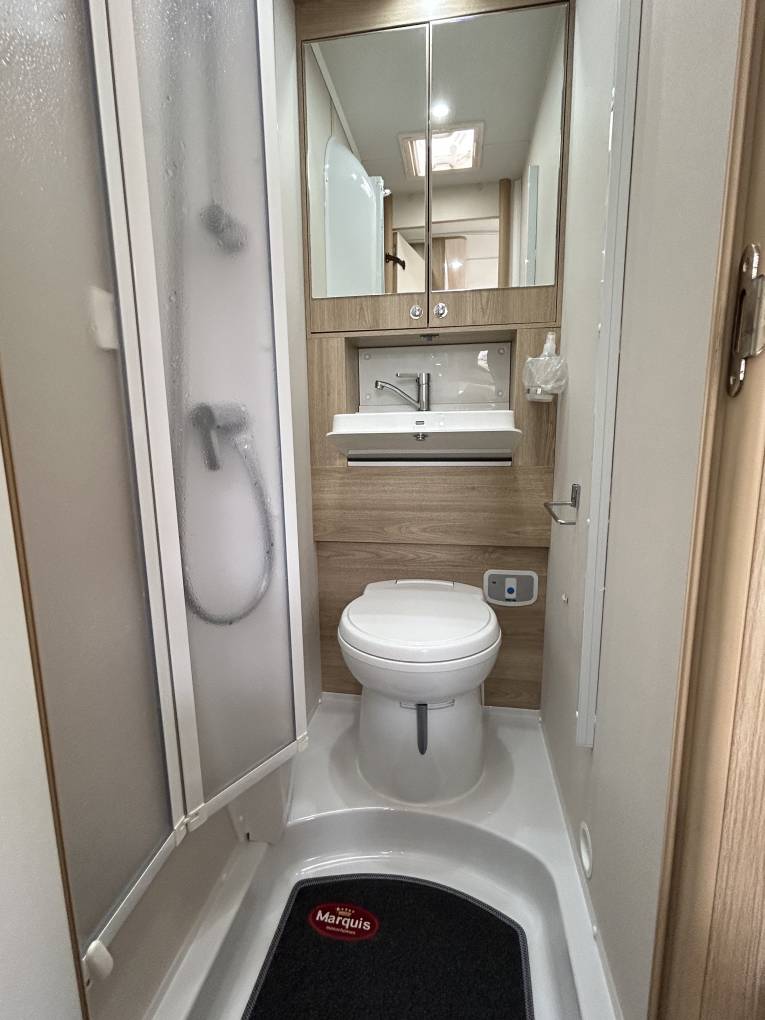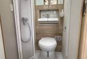 which has a shower with a perspex screen, a cassette toilet, a fold away