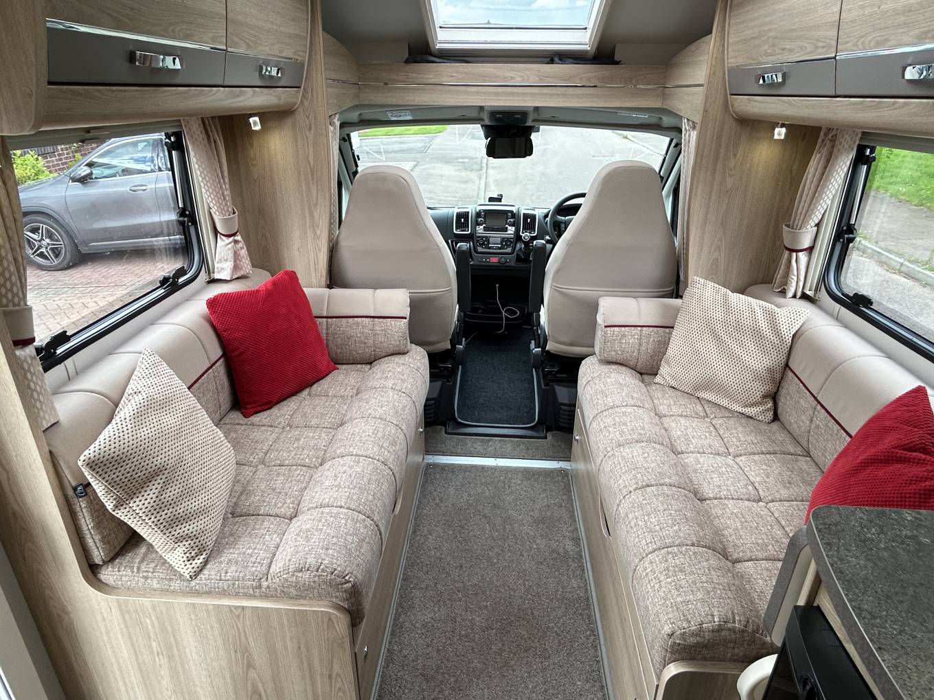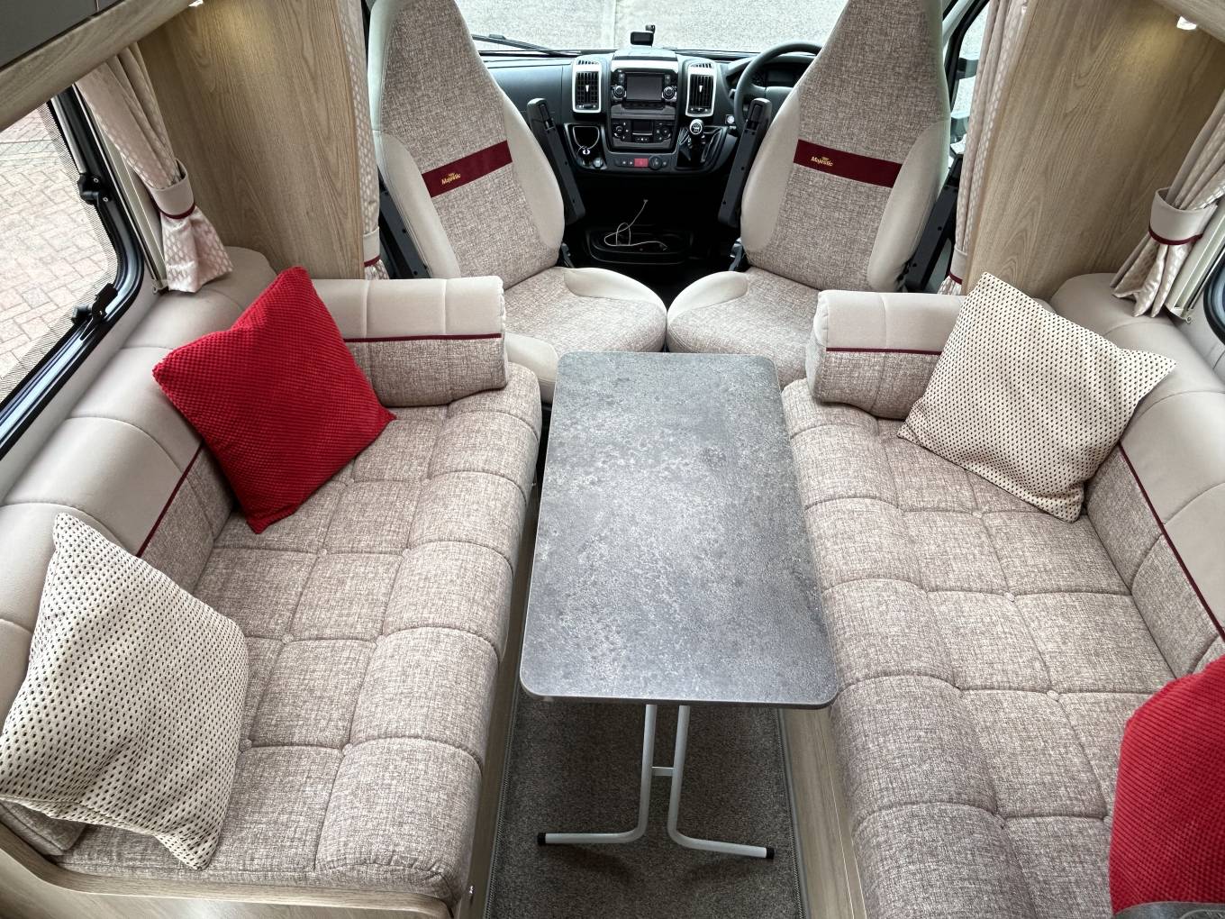 Built on the Peugeot Boxer chassis, this Majestic is powered by the exceptional 2.2 litre Peugeot engine that delivers excellent fuel economy and plenty of power to climb hills when you need to. It has a manual 6 speed gearbox, cab air conditioning, cruise control, driver and passenger airbags, reversing camera, steering wheel mounted controls, power windows and mirrors, 2 swivel seats, a multi-media system with sat nav and full cab privacy blinds.