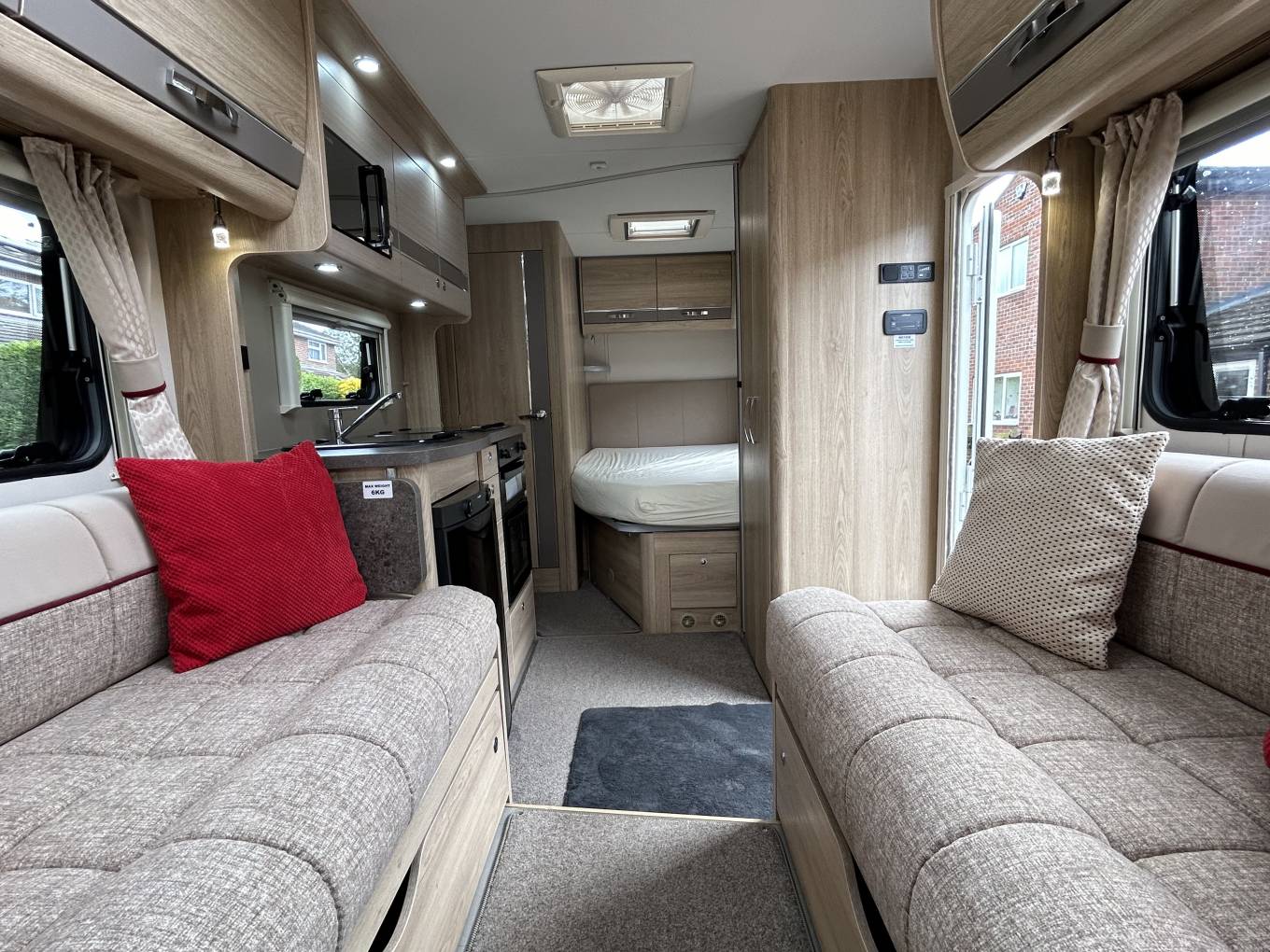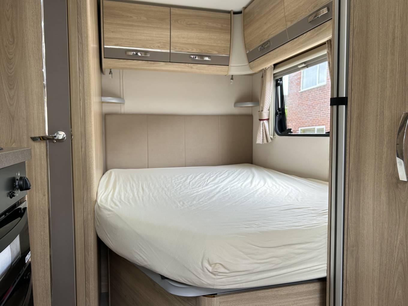 At the rear you have a fixed french bed which will appeal to those who hate having to make up a bed each night and then put it away again the following morning. Under the bed there is a huge amount of storage space to compliment the additional space in the overhead lockers.