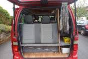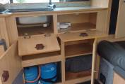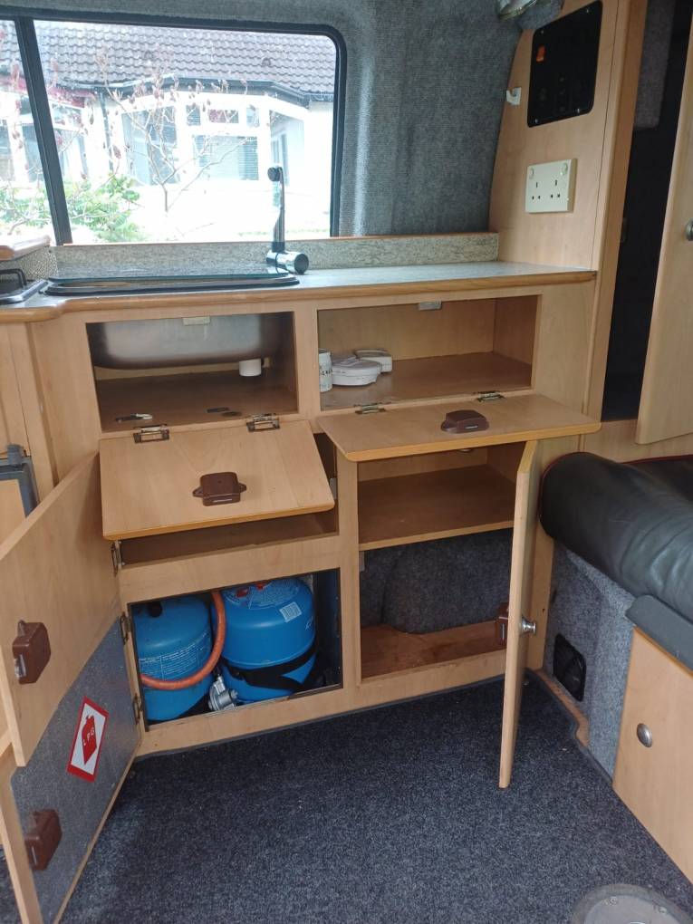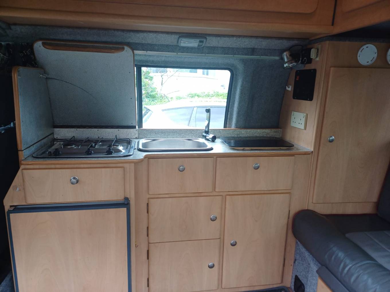 This Toyota Hi-Ace has been converted by Devon Conversions. You have a full side kitchen unit with 3 gas ring hob, grill, sink and electric fridge.