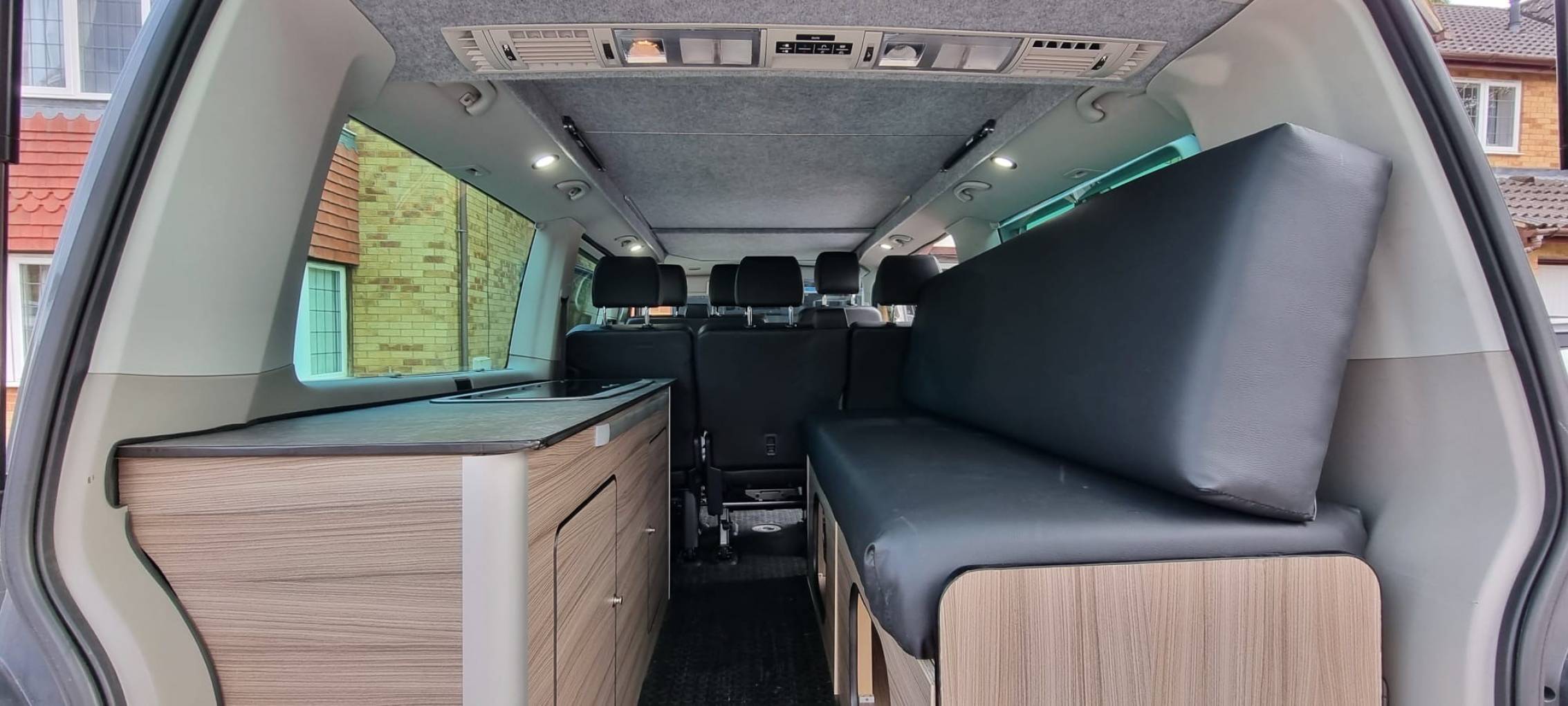 Motorhome Depot North Wales Present a very rare ( VAT Qualifying ) 2019 VW Transporter SE TDI LWB that benefits from a full service history, This conversion has a very unique layout originally a Transporter Minibus and converted to be a very rare six seater/4 berth conversion with a very family friendly layout
