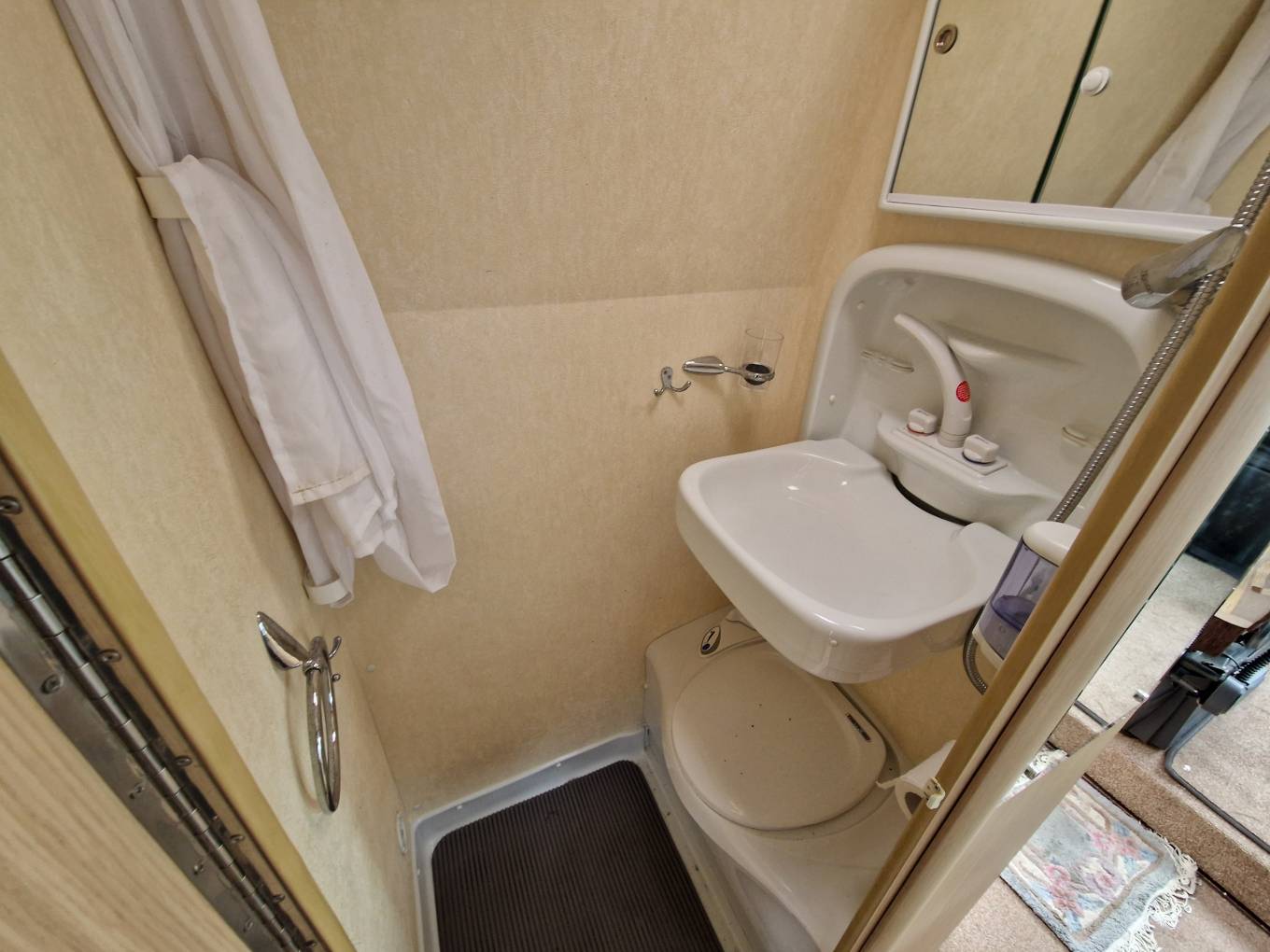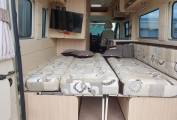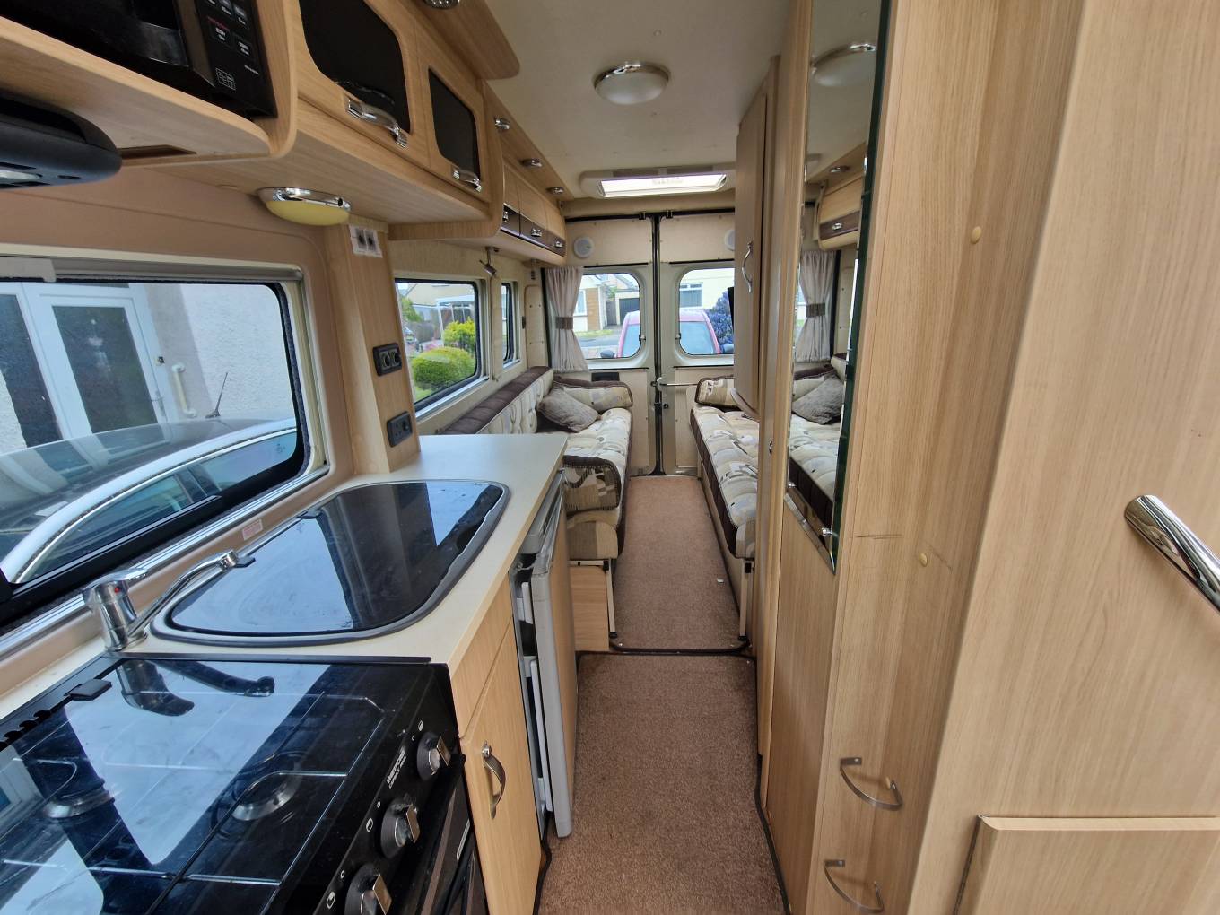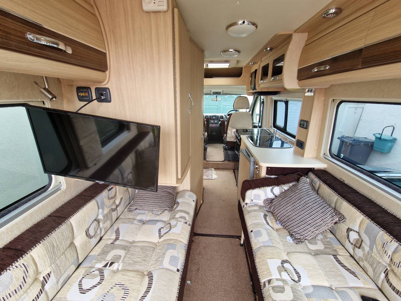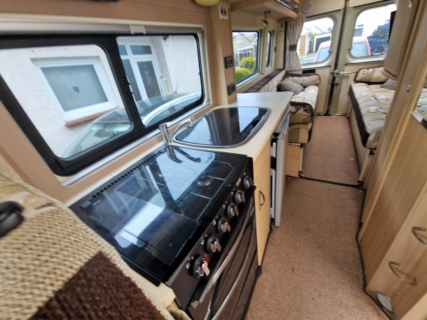 This compact motorhome has lots to offer such as a huge double bed which can be made up in a matter of seconds or simple use as two single Beds, excellent toilet and washroom facilities with pull down wash basin. You will also get a good sized kitchen area with lots of workspace that will also give you 3x gas hobs and hot plate, a grill/oven, extractor fan, microwave and a large fridge with freezer box. In the cab of the motorhome you will have a large touch screen radio, air conditioning and a reverse camera viewing screen making parking no hassle.