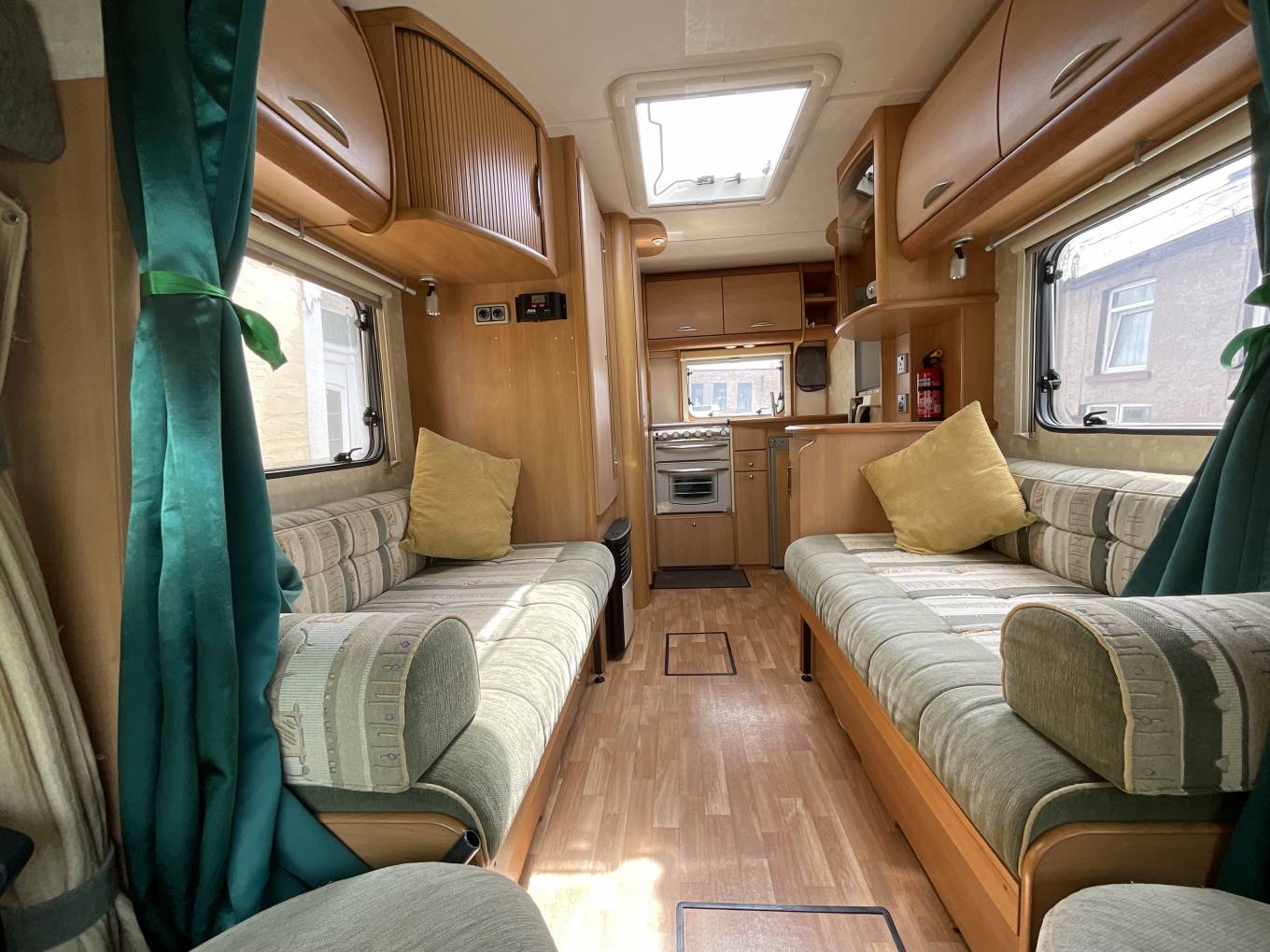 This model also features a good sized rear kitchen with full oven. 4 ring gas hob, fridge/freezer, hot and cold water and efficient heating system.