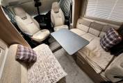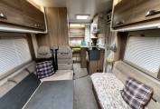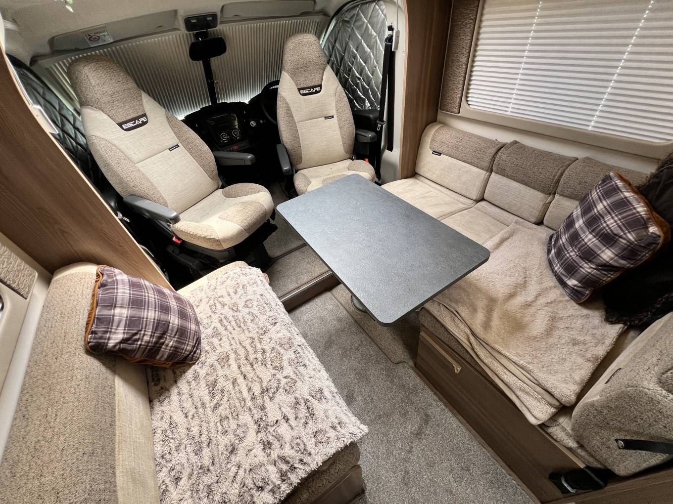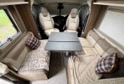 On entering via the habitation door in front of you and to your left is the lounge area consisting of a settees on both sides, twin forward facing rear seats, Swivelling Cab Chairs and a centrally mounted extendable and multi moveable table.