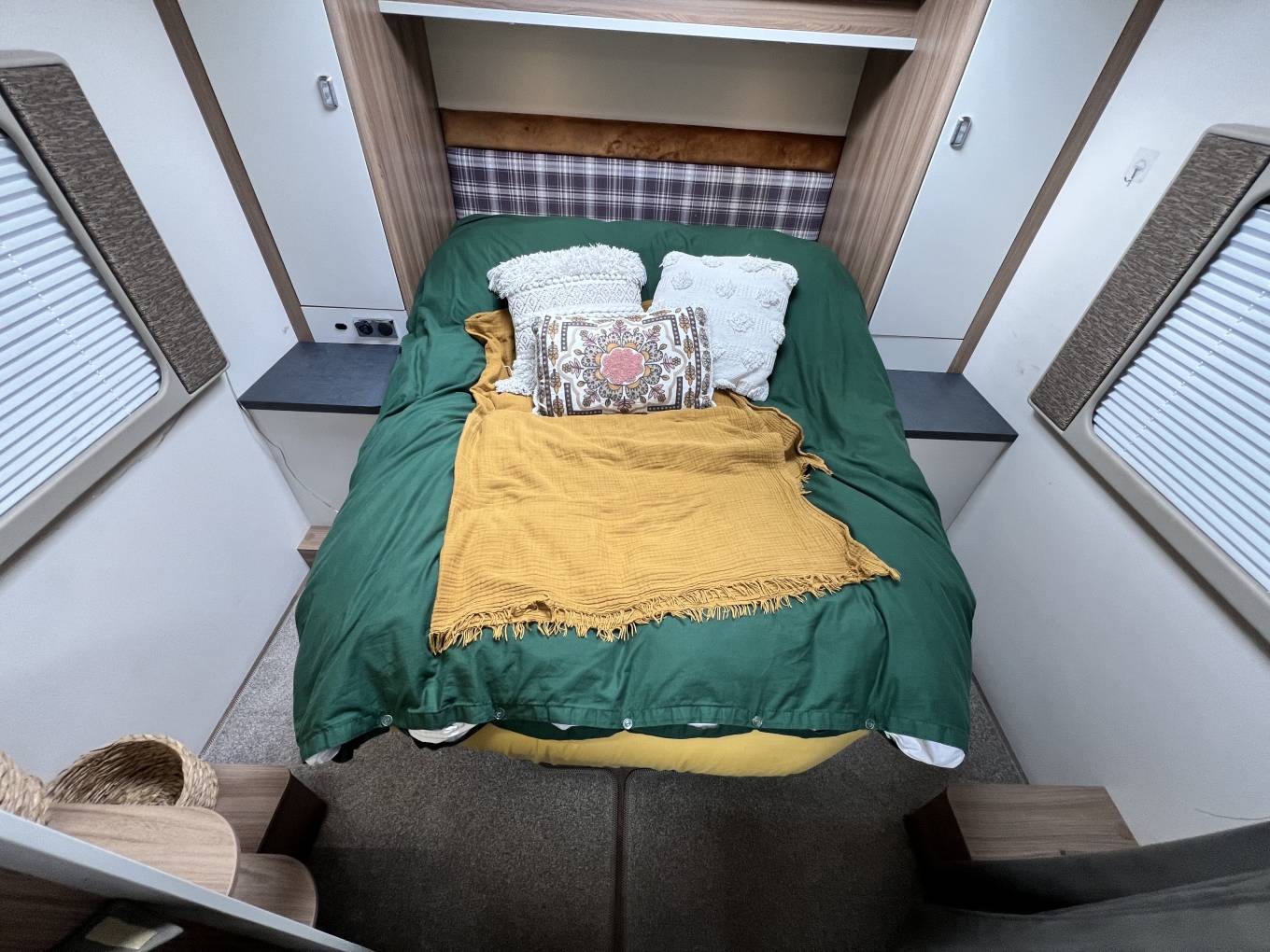 To the rear, past the privacy curtain is the Central Island double bed flanked by twin wardrobes.