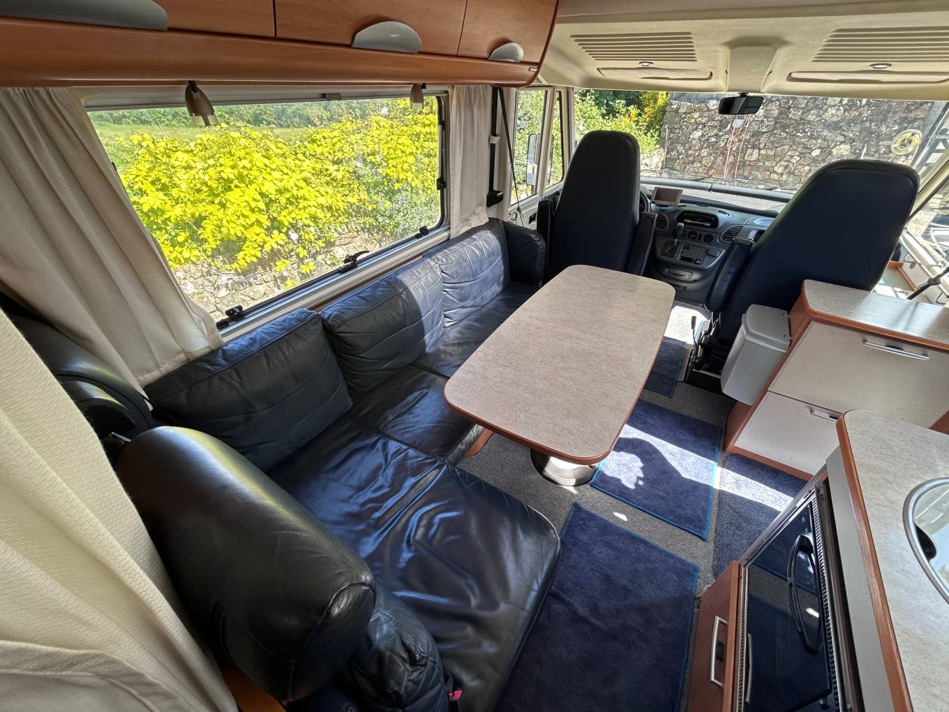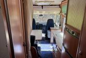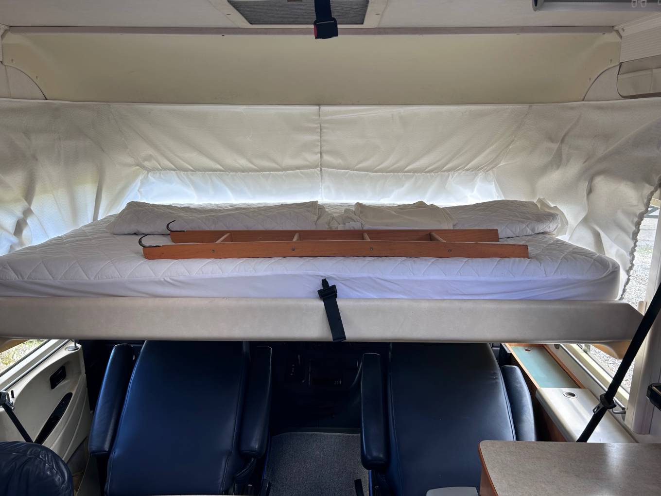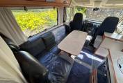 for 6 people and 4 travelling seat belts. The cab seats swivel for dining and fold