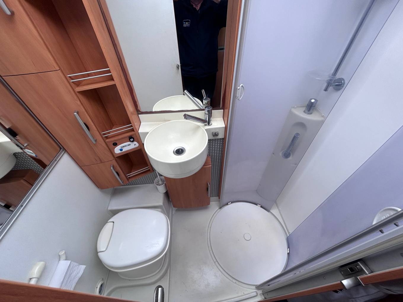 a Thetford cassette toilet and SOG toilet ventilation system, wash basin with