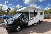 The motorhome has the sought after black cab and this model has a luxury feel throughout and is a motorhome that covers a lot of desired features and offers the Luxury Island bed at the rear. This model can sleep up to 4 and travel up to 2 people. We fully expect the F74 will tick a lot of boxes for potential buyers when looking for the ideal motorhome, can be driven on a standard UK license and has the 650KG payload!