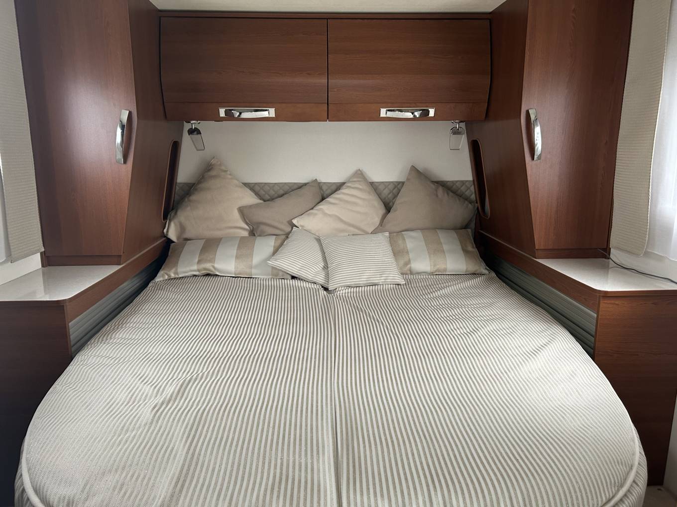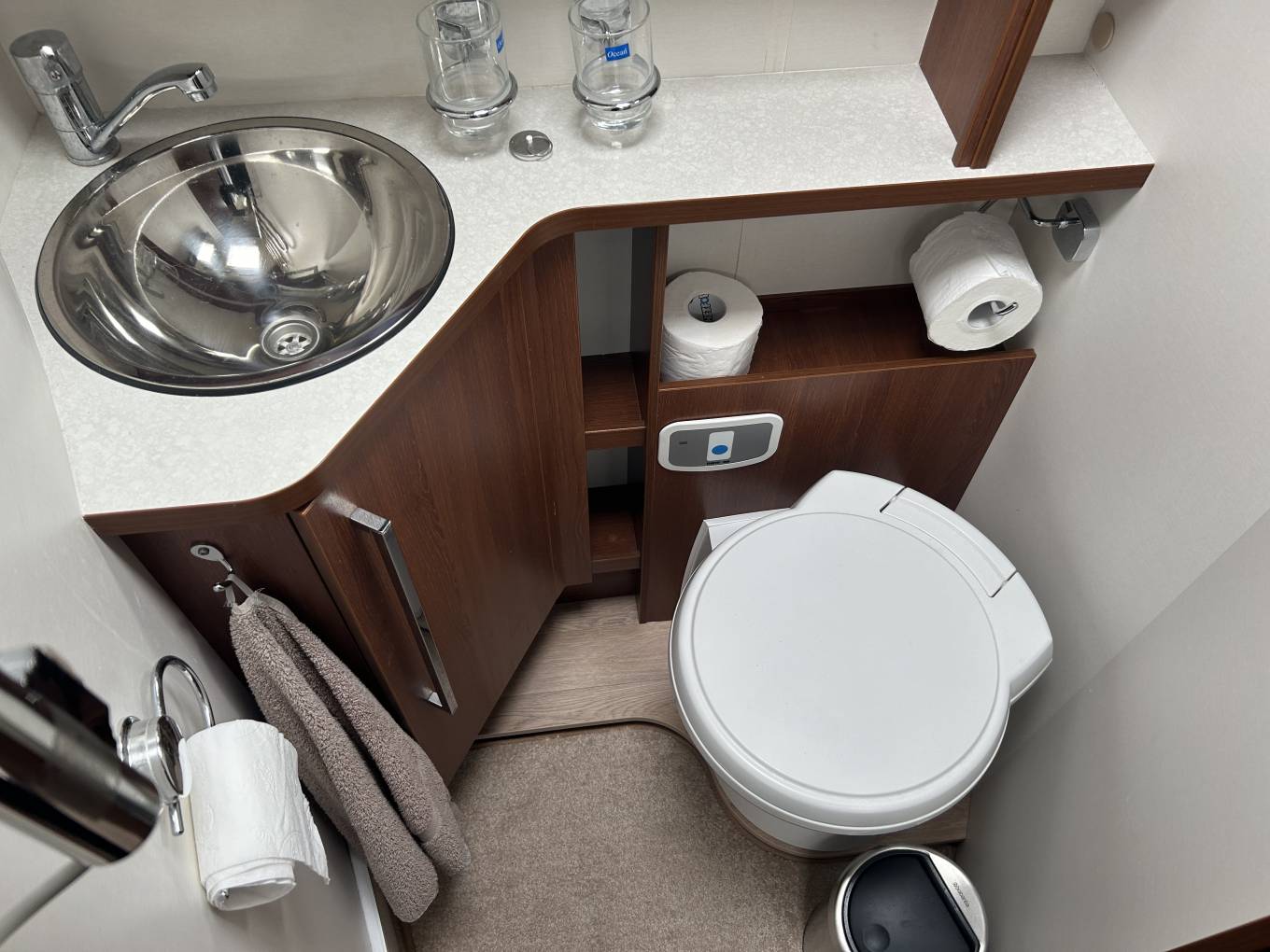 The 8096df is extremely comfortable to sleep in and the rear fixed island bed is perfect for a wonderful nights sleep. This bed can be raised and lower electrically. There is also a large double bed that simply pulls down over the front of the cab, once again in excellent condition. The motorhome comes with a central washroom that features a Theford flush cassette toilet and sink on one side and separate shower on the other. There is a spare cassette and the toilet is fitted with the SOG system to keep it nice and fresh. Heating and hot water are provided by the Truma system.
