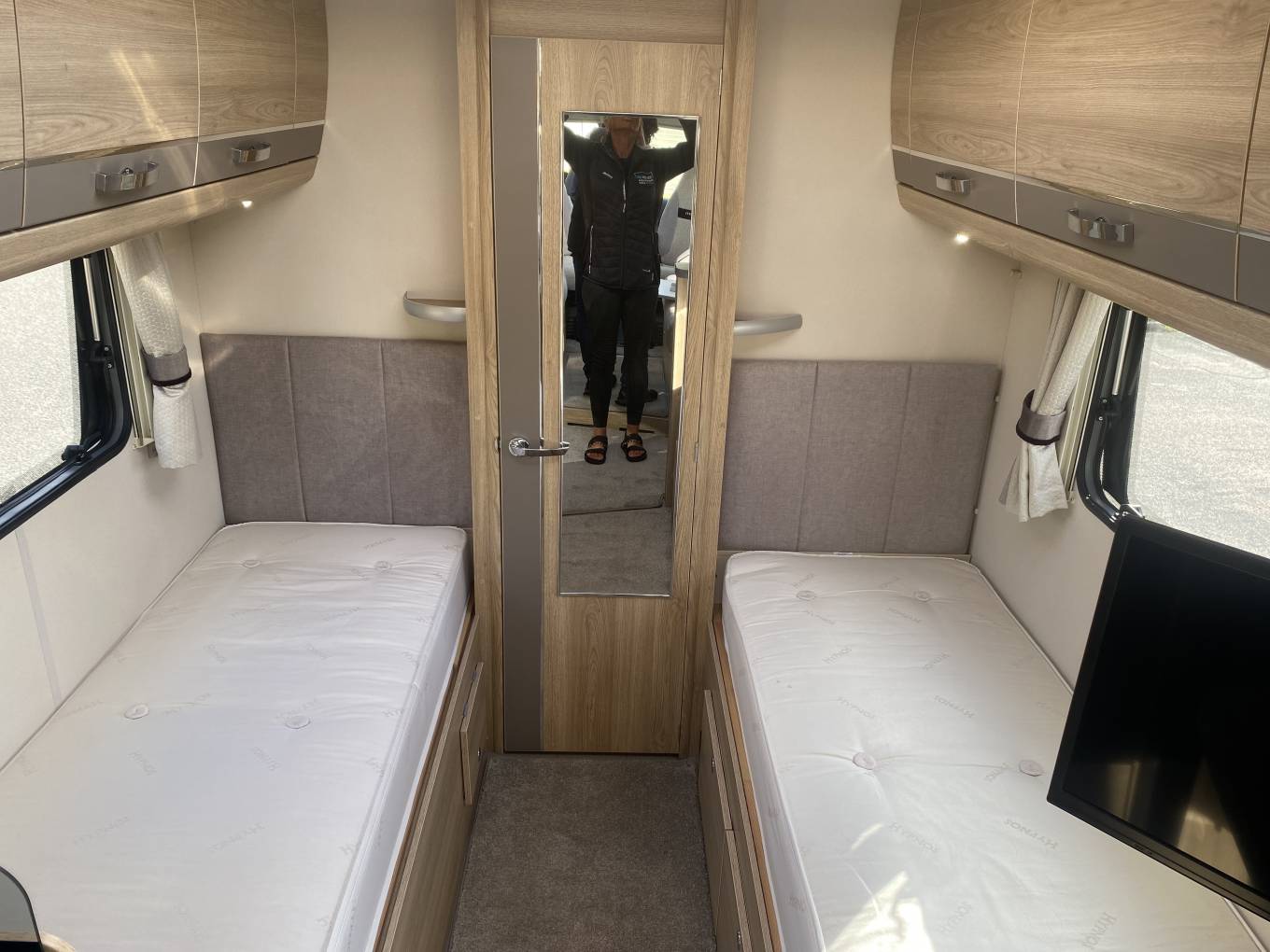 3-way fridge/freezer. Through to the rear are the two fixed single beds leading
