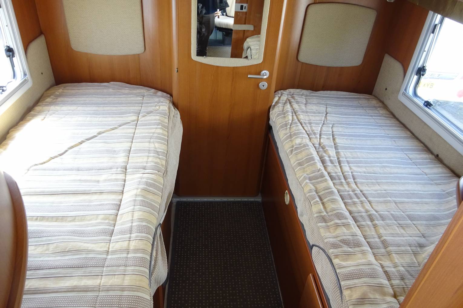 As you step inside the motorhome you get a real feel for the condition of the Motorhome with a light, warm, comfortable feel. The two captains chairs and settees making for a comfortable living area with seating for 4 around the table. The well equipped kitchen with 4 burner gas hob, oven and grill, sink, and fridge with separate freezer compartment allows for all your cooking needs. Towards the rear of the motorhome you find twin single beds in a private room leading to the end washroom. The washroom is a good size with a sink, toilet and full sized shower cubicle. There is a large drop down bed above the cab making sleeping for 4. There is ample storage throughout the living area, kitchen and bathroom for all your needs including 2 wardrobes and under bed storage accessible from the outside. It is fitted with a wifi booster. This is a well cared for motorhome with low mileage in very good condition.