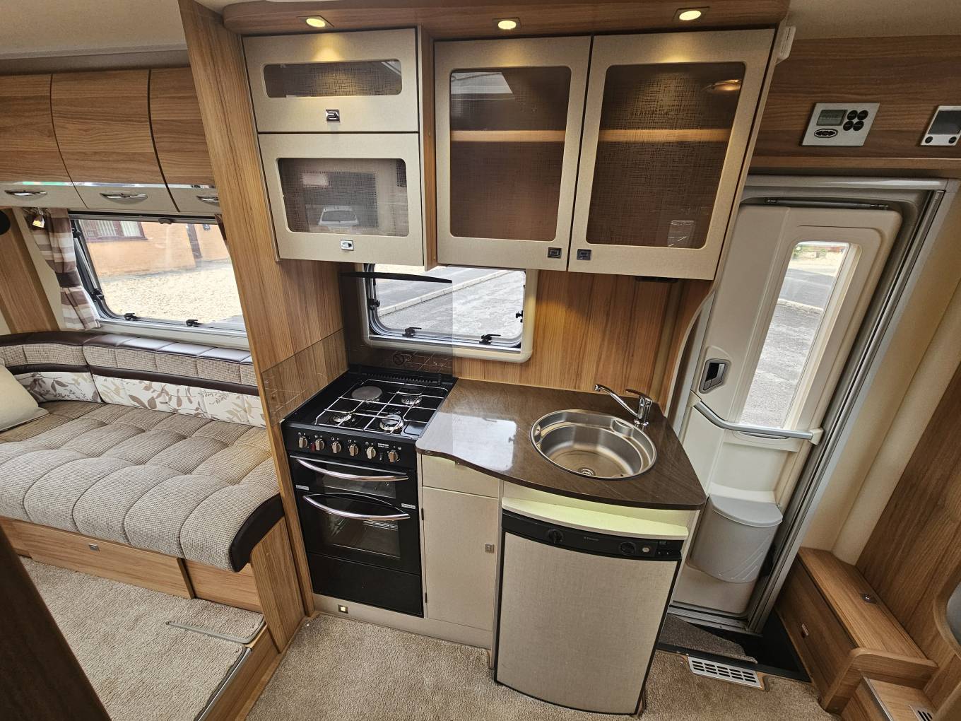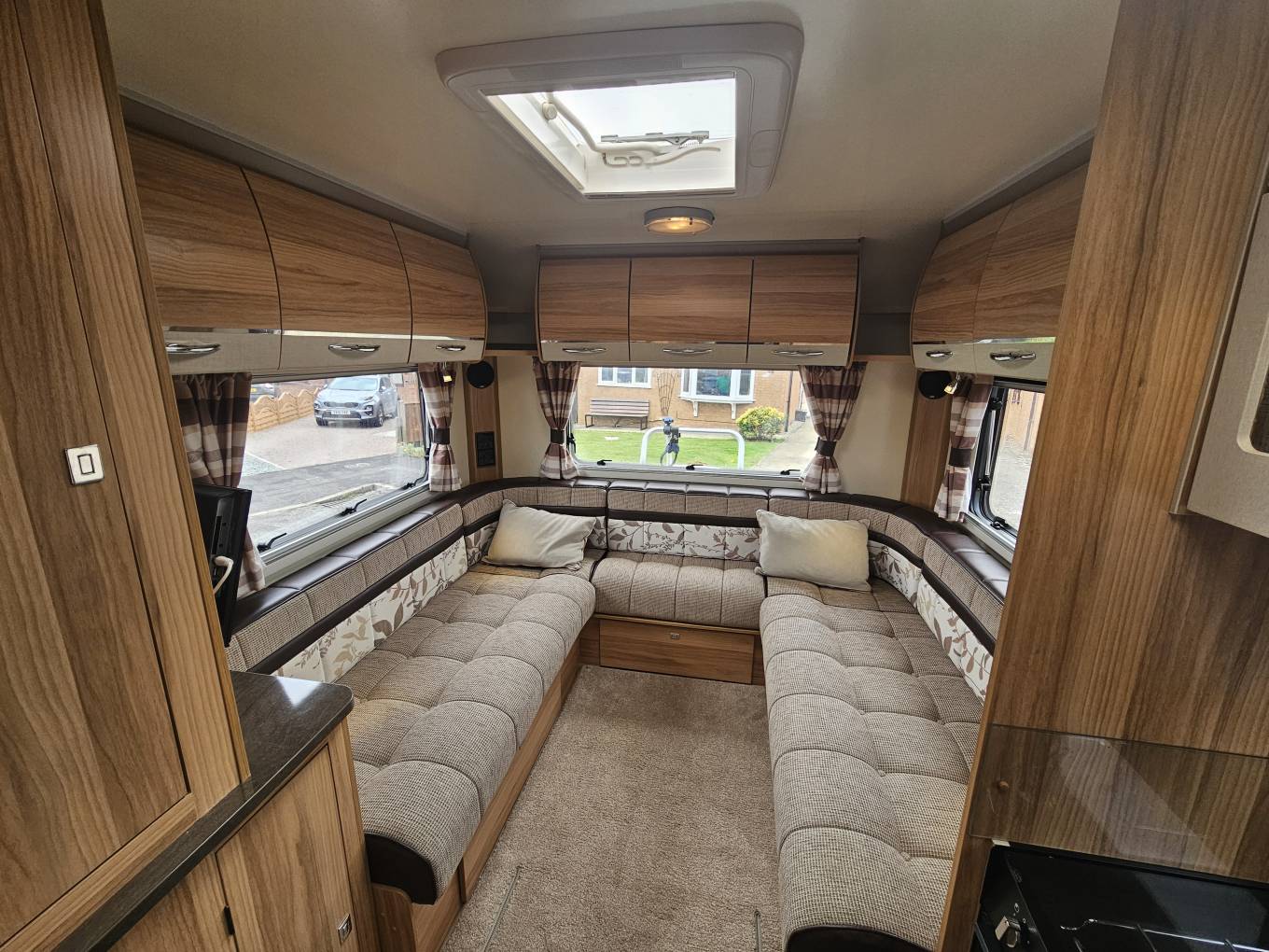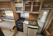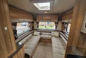 At 6.64 meters long and 3,500kg, the Bailey Approach Autograph 625 is easy to drive and manoeuvre. The low-profile design, sleek black cab, and modern graphics make it a real head-turner. A dual reversing camera makes parking effortless, while the manual 6-speed gearbox, air conditioning, radio with CD player, electric windows, and cab privacy blinds ensure a comfortable driving experience.