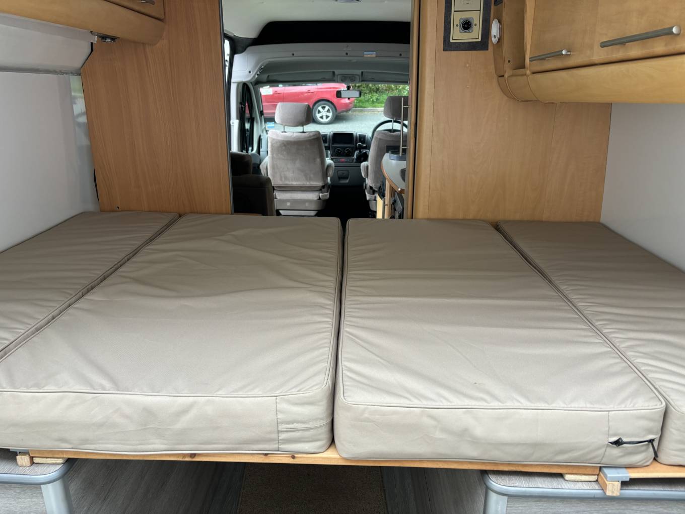 The cab area includes a stereo with touchscreen display, radio, bluetooth and smartphone compatability. Extras include solar panel, wind out awning and a tow bar.