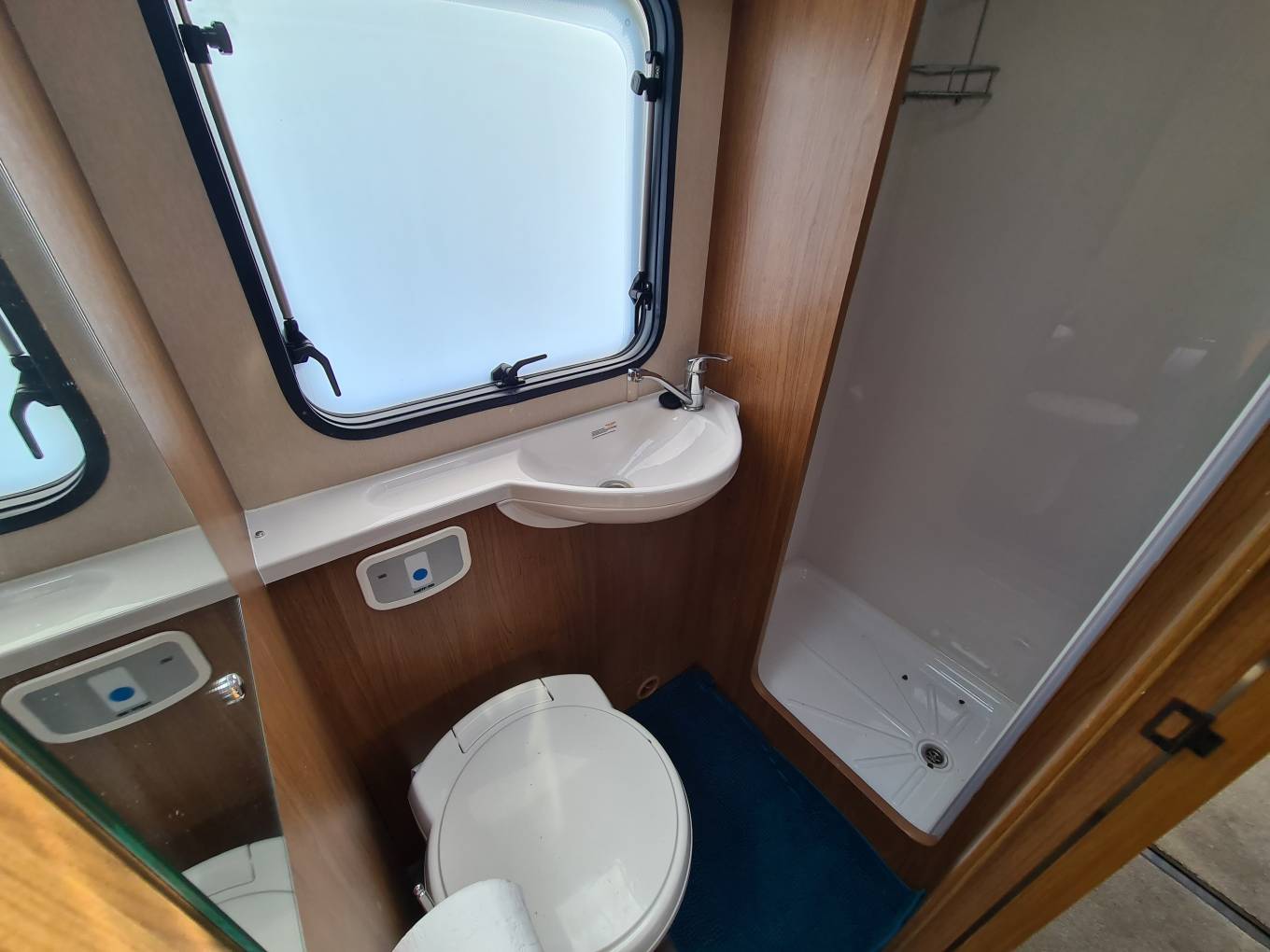 The Washroom has a cassette toilet, vanity unit, wash hand basin and separate shower cubicle.