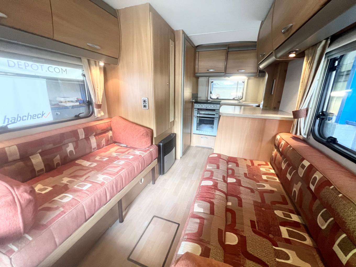 Behind the cab you have the lounge area featuring 2 side facing sofas, These pull together to make a large bed measuring approximately inches or alternatively you can spin the 2 swivel front seats around and use them as 2 single beds. There is storage space under the sofas as well as in the overhead lockers and there is also a large external storage box on the rear. At meal times simply erect the freestanding dining table and when you have finished this neatly stores away in a small cupboard. Above the lounge is a large skylight and with the 2 lounge windows you are guaranteed plenty of daylight flooding in.