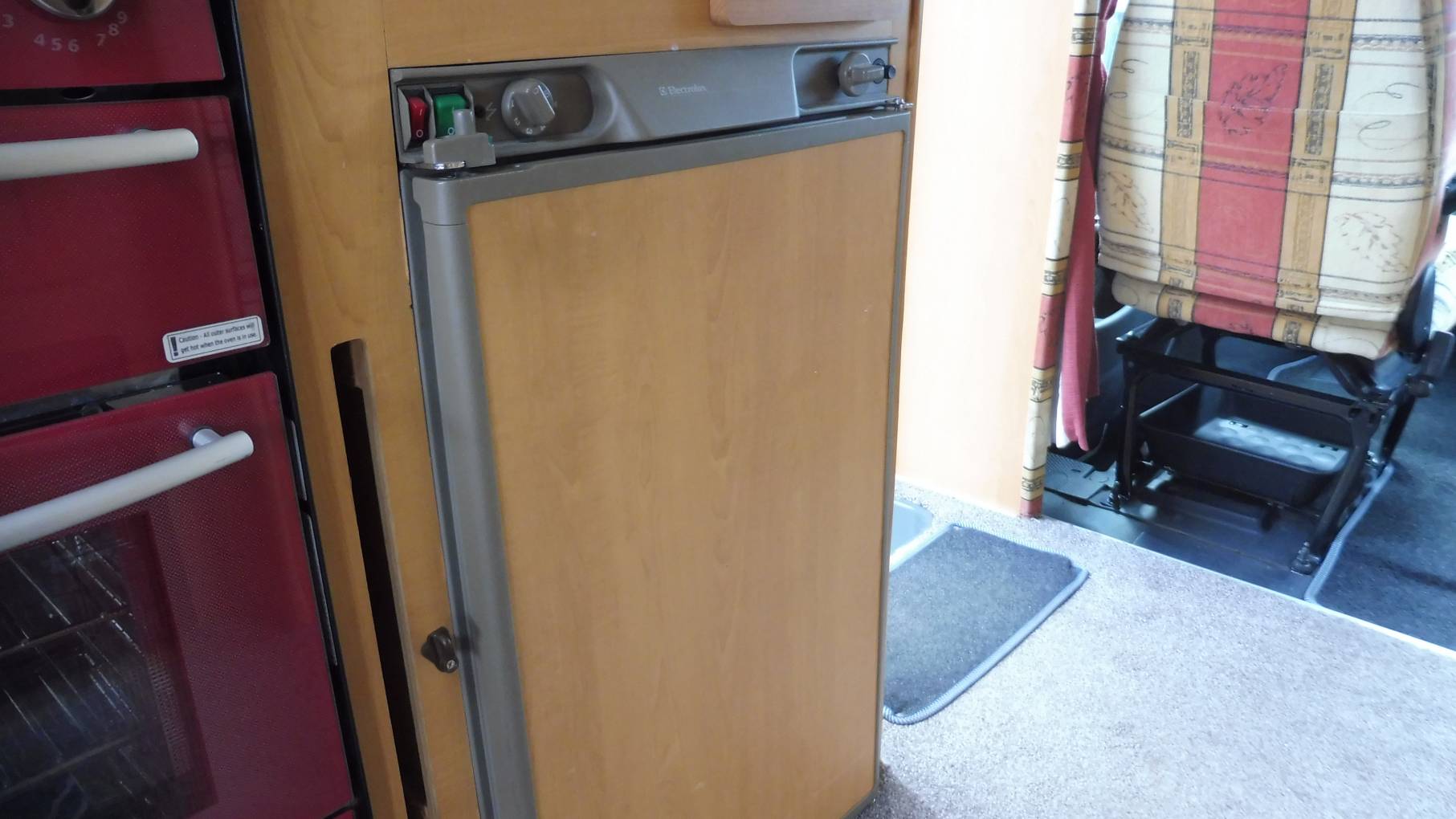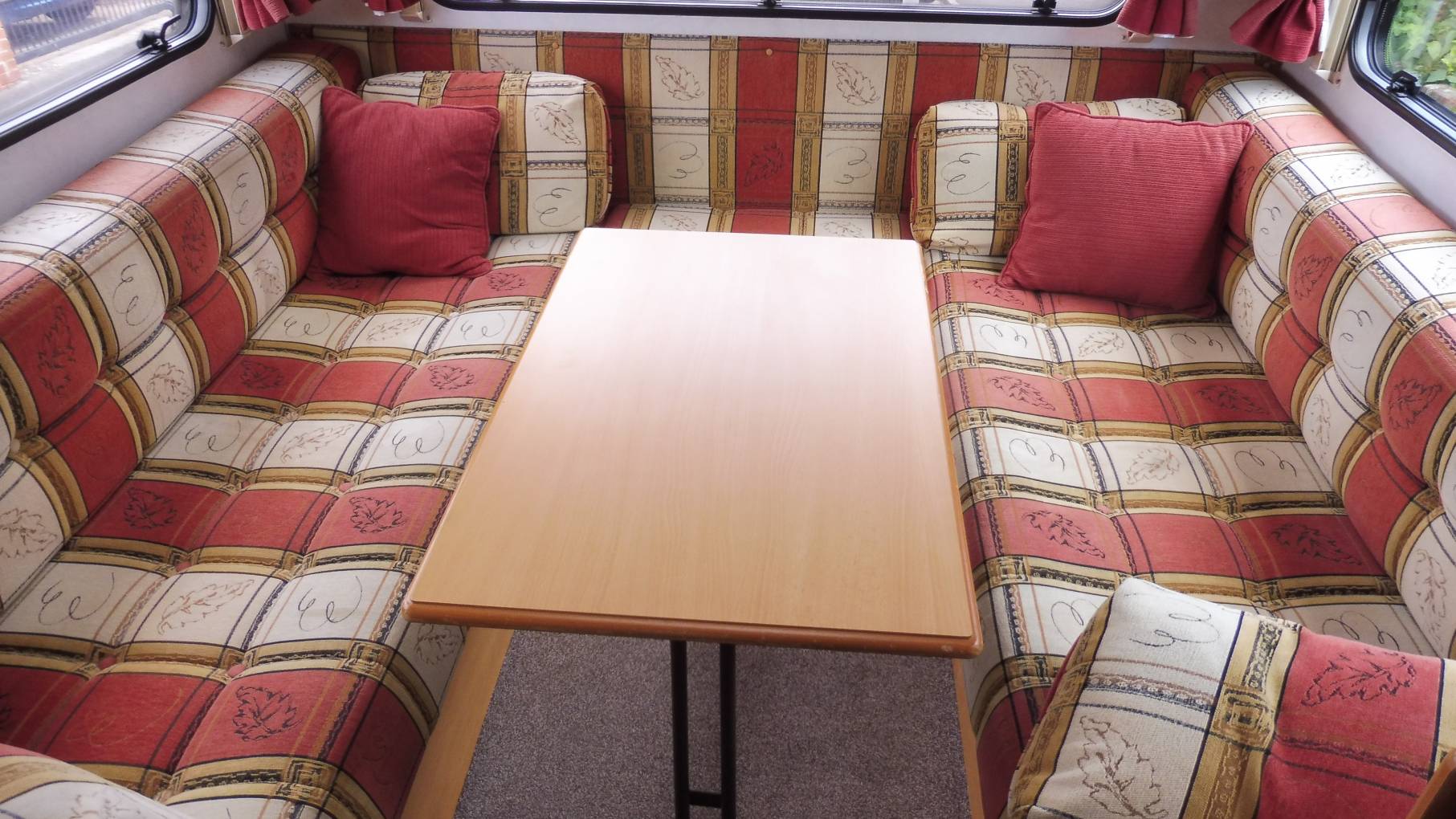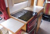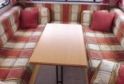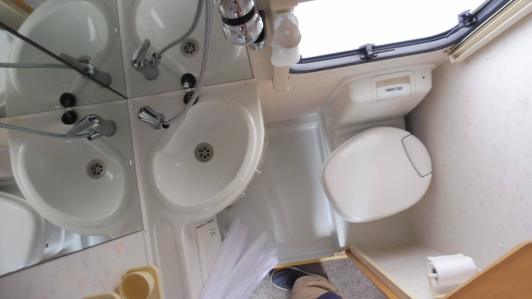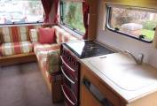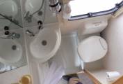 To the centre of the vehicle you will find the kitchen consisting of 4-burner hob, oven, grill, sink with drainer and fridge with small freezer compartment. The washroom is located adjacent and has a wash hand basin, cassette toilet and a shower.