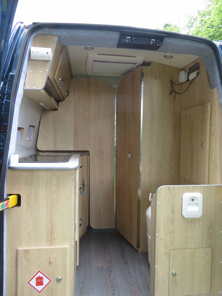 At the very back of the camper there is a cassette toilet enclosed in a cupboard whilst not in use. Storage is no problem with overhead lockers, a hanging cupboard and room above the cab to accommodate all those essential items.