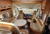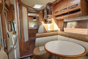 dinette with an L shaped sofa. The forward facing seats are travelling seats