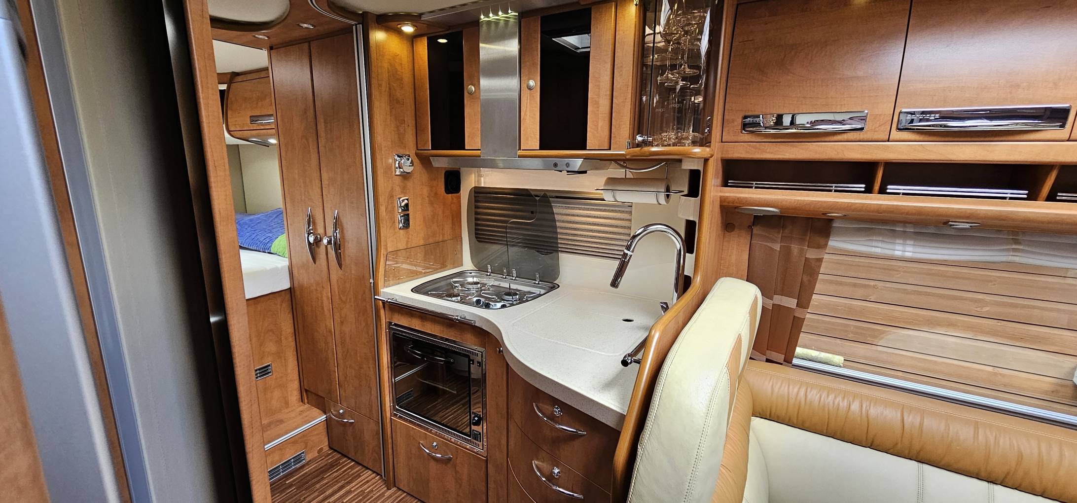 glasses. Opposite is the large fully automatic 3 way Dometic Fridge with