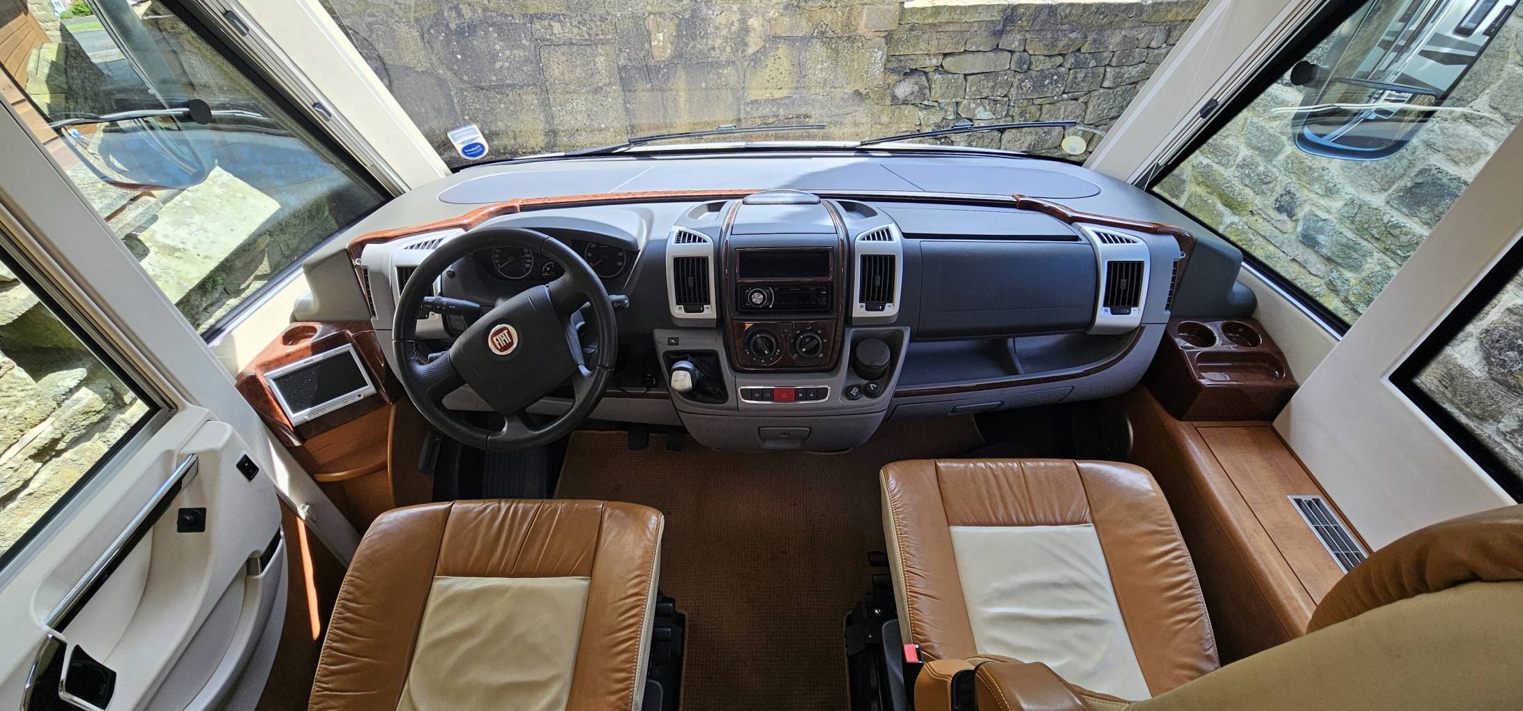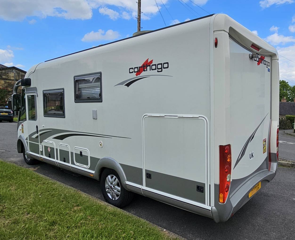 Motorhome Depot Ashfield are proud to offer for sale this Carthago Chic E-line I47 from one of Germanies finest Motorhome manufacturers. Based on the Fiat Ducato chassis with a 3000cc diesel engine it is a Left Hand Drive Automatic with only 39,400 miles (odometer is in miles not KM) on the clock. Having had only ONE owner from new, it comes with a well-documented service history including all mechanical service receipts and Habitation stamps. The cab benefits from: power assisted steering; air conditioning, cruise control, reversing camera, single cd head unit, electric heated mirrors; blinds to front screen & side windows.