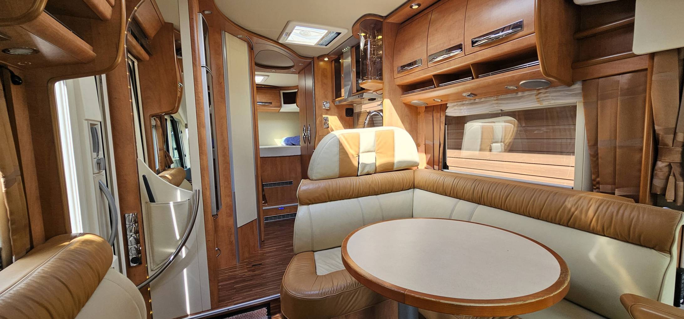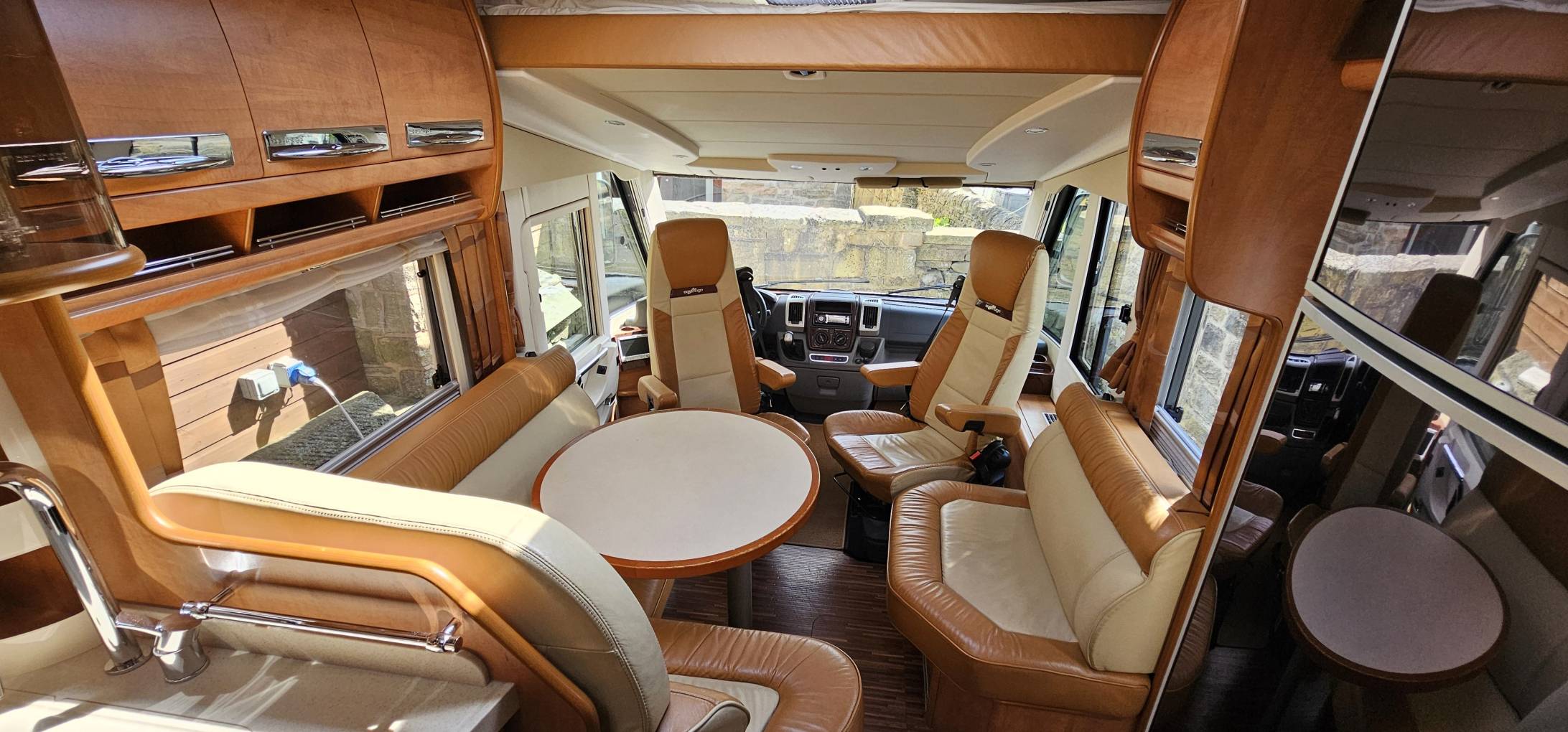 The van is full of top spec including but not limited to: Underfloor heating and air conditioning fitted at factory from new, VB Air Suspension, Automatic Levelling System, Teleco Sat Dish, Thule Wind out awning, External Shower point, Scooter ramp to garage, Alde Heat Exchanger, Cobra alarm/Tracker and it has 2 x 13kg refillable gas bottles included with the hook up cable and a spare wheel. The motorhome is fully winterised with a double floor.