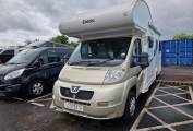 Motorhome Depot are pleased to present this 2013 Elddis Autoquest 180 6-berth,6-belt family motorhome. This is the dealer special Riva GT Gold that was only supplied by 3A's and has some upgrades from the basic Autoquest 180 such as the metallic gold front end and body graphics.. Based on the Peugeot Boxer, it is powered by the excellent chain-driven 2.2Hdi 110BHP engine and 6-speed gearbox. Having only covered 12300 miles with 1 owner, it has got FSH and an MOT until 31.3.2025 with no advisories. It has a GVW of 3500kg meaning it can be driven on a standard UK licence and is 7.15m long.