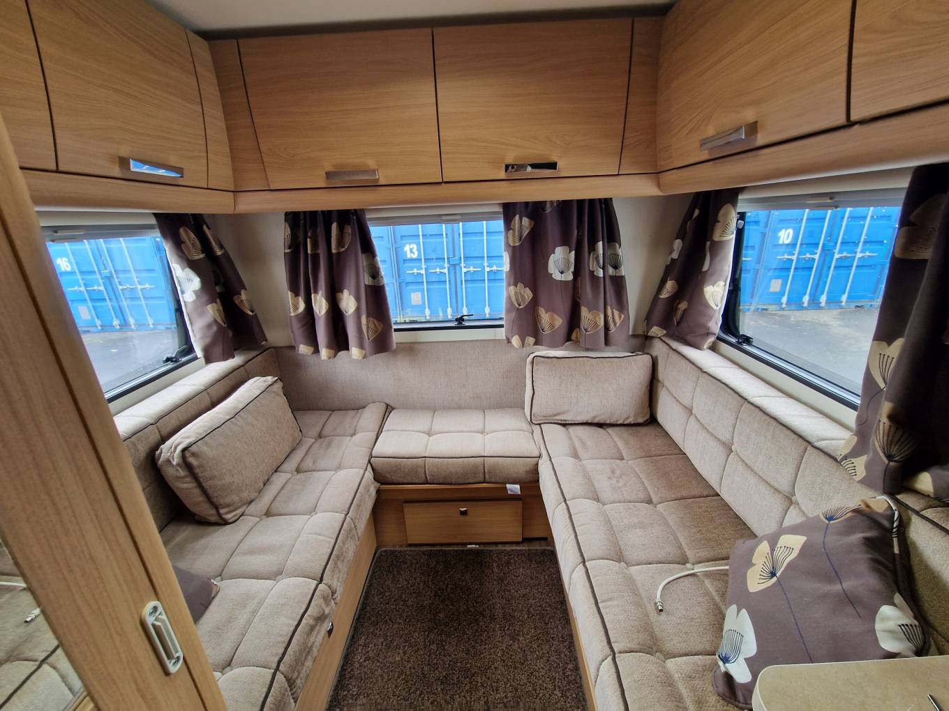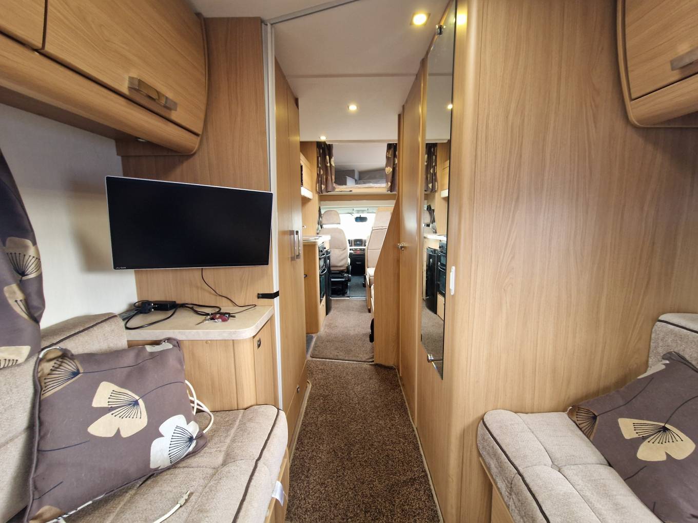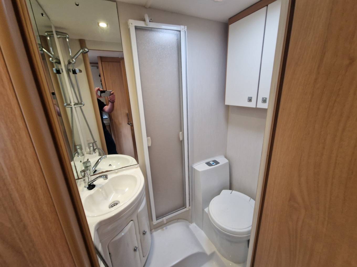 A central washroom provides home from home comfort with a flushing cassette toilet, sink and vanity mirror and shower. Further storage in the forms of a wall mounted cupboard and undersink cupboards. Opposite the washroom is a good sized full length wardrobe space.