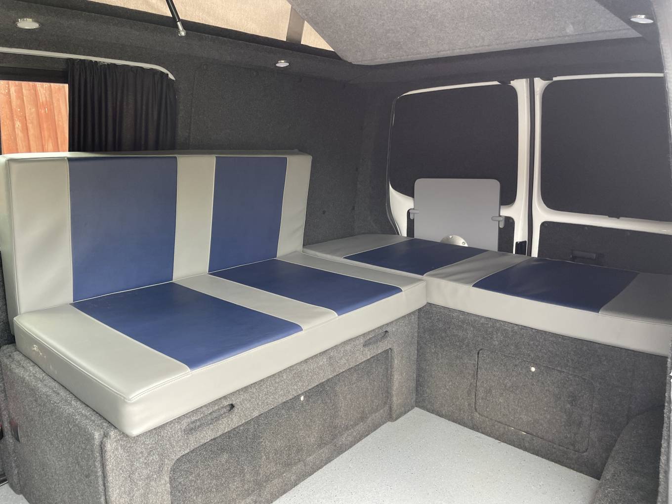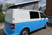 Here we have a fabulous looking Vw T5.1 professionally converted by Rising Sun Campers in 2021 for the current owners, this was designed to give the maximum flexibility in using the outside space and making the most of the inside. With a pop top roof, great fiamma 45s wind out awning and the double passenger swivel seat this Vw has great outside styling matched by a practicle flexible interior. Of course if you wanted to upgrade this van by adding a hob and sink would be a great addition to the van.