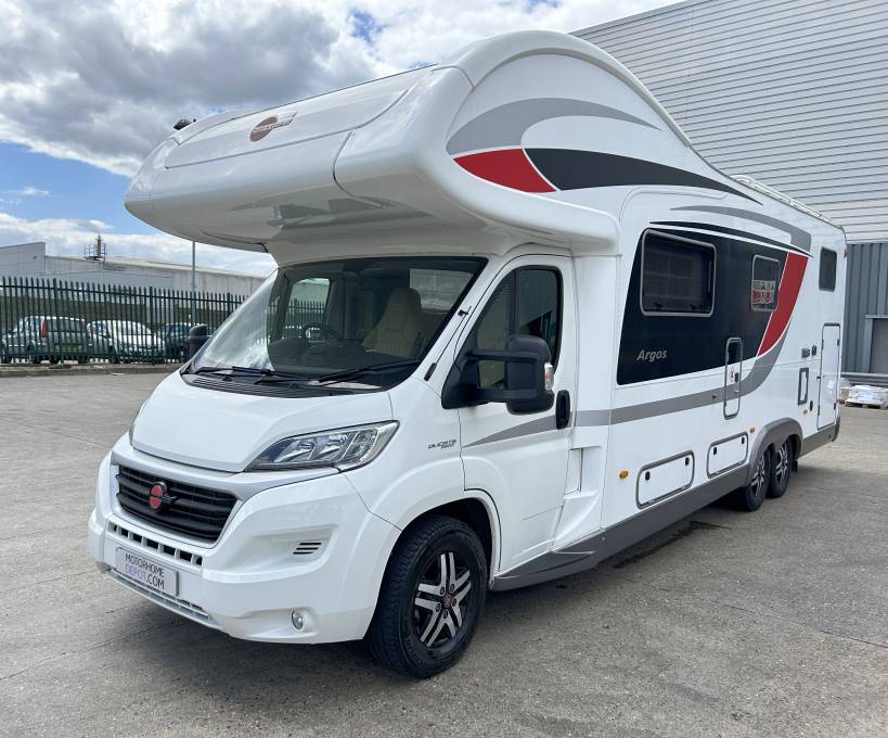 The Burstner Argos 747 is one of the most iconic motorhomes ever made. It combines famous German build quality with luxurious spacious living for families. Its cavernous garage makes it attractive to people who want to pack plenty of belongings and go long-term touring. These motorhomes also appeal to motorbike enthusiasts, paddleboarders and outdoors sports enthusiasts.