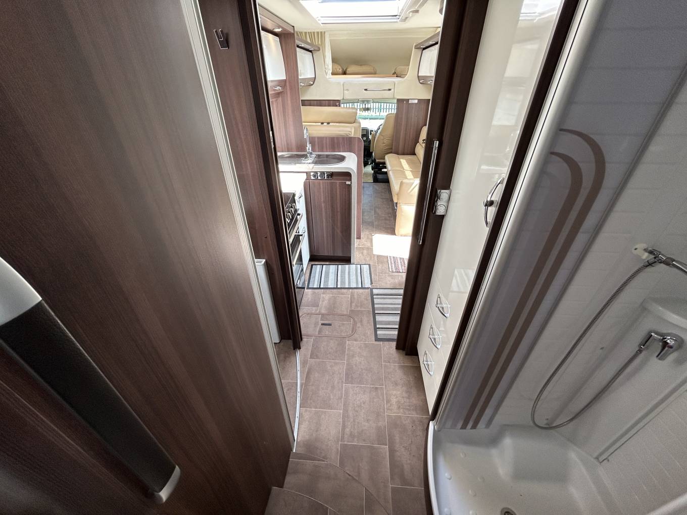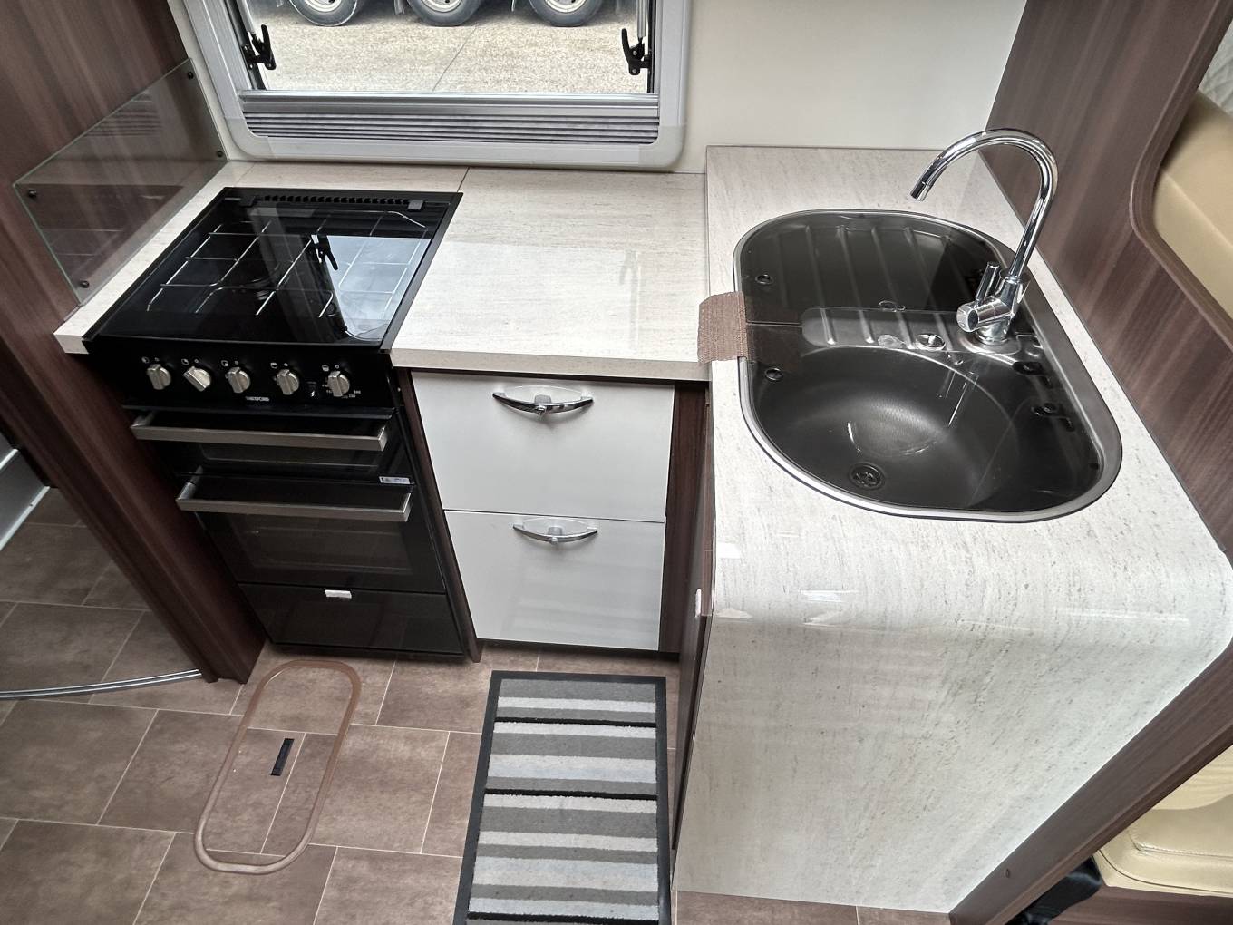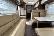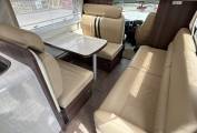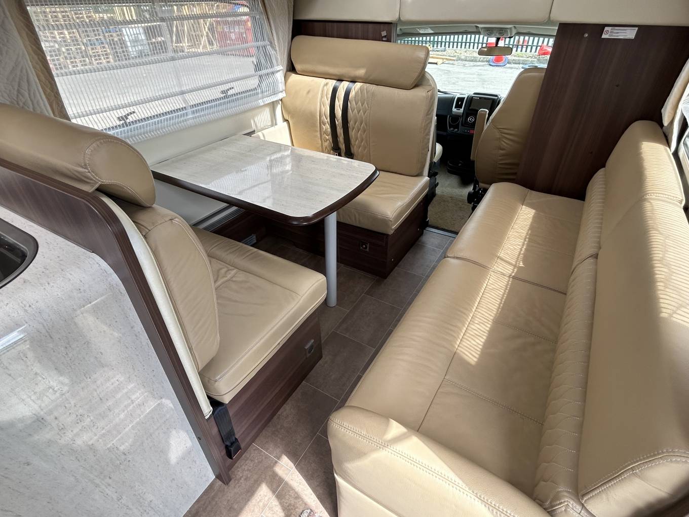 The stunning layout inside has been designed to provide families with spacious luxurious living. Up to 7 people can sleep in the motorhome and it has six travelling seat belts. The sleeping berths consist of a huge rear fixed bed measuring 77 x 58 inches and a cavernous overcab bed that is 80 x 60 inches. The dinette converts into another double bed and the long sofa can be used as a single.