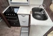 The mid-kitchen comes fully loaded with a gas oven and grill, a 3 gas burner hob and a microwave so you'll have no problem rustling up great food on the go. You also have a spacious full length Dometic fridge freezer with automatic selection.