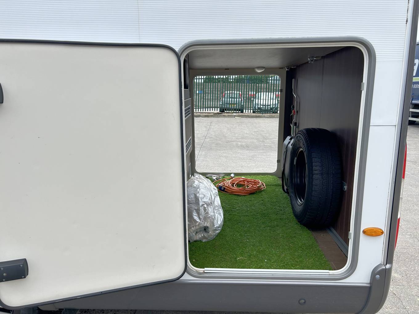 Externally the motorhome has a number of impressive features to enhance your motorhome holiday experience. It has a solar panel to keep your leisure battery topped up and it gives you the flexibility to do some wild camping on your travels. It also features an external gas point for an outside barbecue so you can enjoy some alfresco dining. There is an outside shower point for hosing down sandy feet or muddy dogs and a roof ladder for cleaning those hard to reach places.